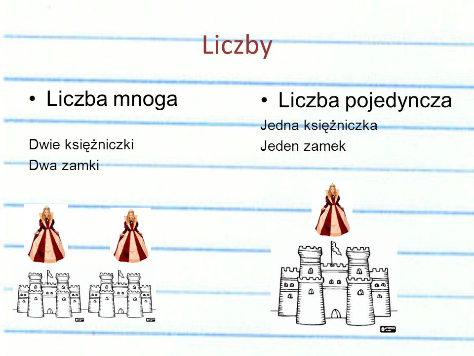 Dwa zamki. Liczba pojedyncza. Jedna księżniczka. Jeden zamek.