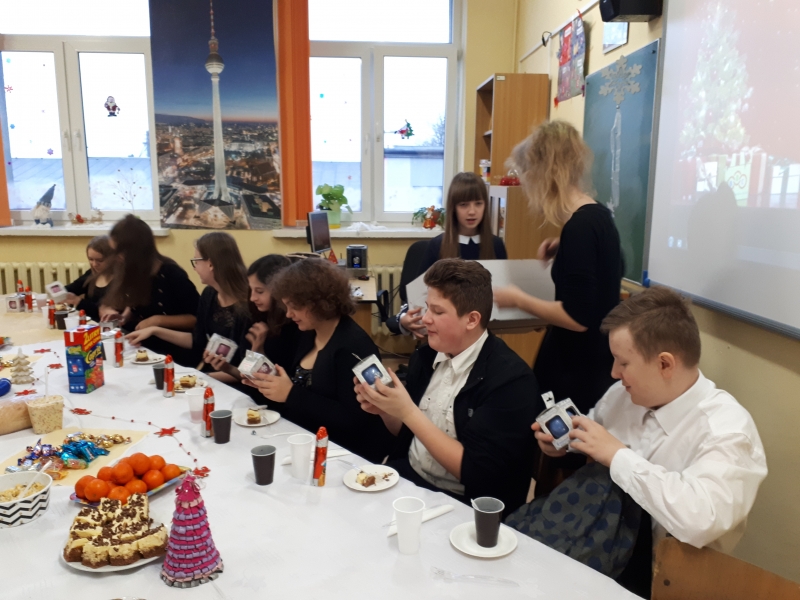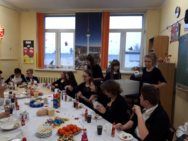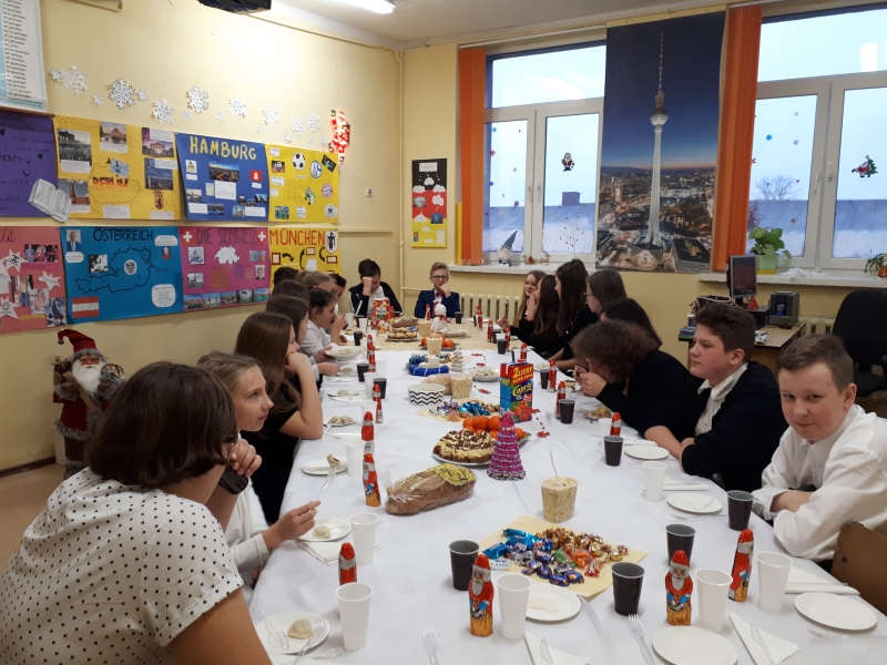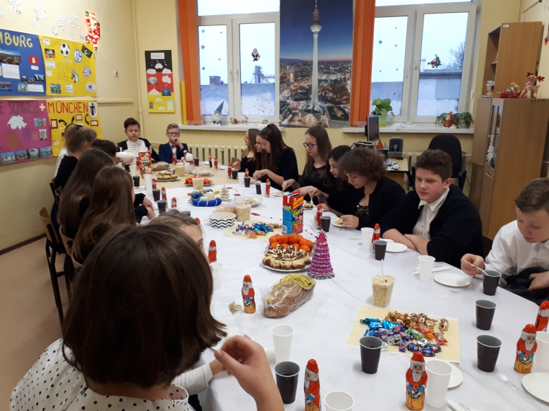 22 grudnia odbyła się w naszej klasie ” wigilia klasowa” czyli spotkanie przedświąteczne. Dzieląc się opłatkiem składaliśmy sobie życzenia na Boże Narodzenie i Nowy Rok. Oczywiście były też drobne prezenty i dużo radości z tego powodu. Nie zabrakło przy tym śpiewania i słuchania kolęd. Na stole pojawiły się także potrawy wigilijne przygotowane przez uczniów i ich rodziców. Świąteczną atmosferę pogłębiał także wystrój klasy. Po radośnie spędzonych chwilach uczniowie udali się na przerwę świąteczną, aby powrócić w nowym roku 2018 w pełni sił do nauki.