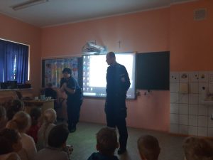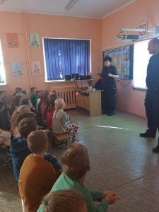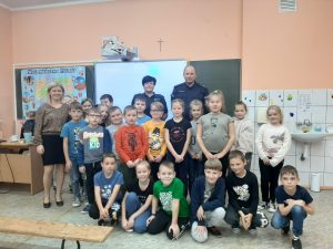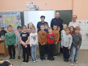 Policjanci z Komisariatu Policji w Ozorkowie odwiedzili uczniów klas 1-3. Spotkanie z funkcjonariuszami policji miało na celu kształtowanie u dzieci postaw i nawyków sprzyjających unikaniu zagrożeń, utrwalenie podstawowych zasad ruchu drogowego oraz zapoznanie ze sposobami zachowania się w kontaktach z obcą osobą.