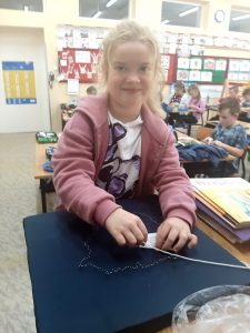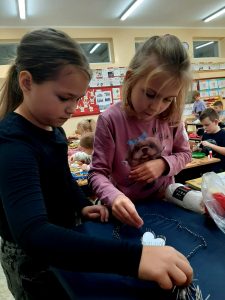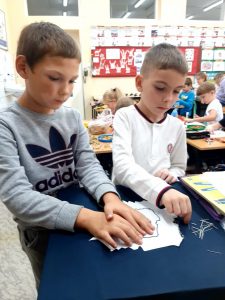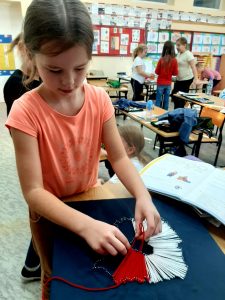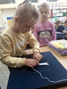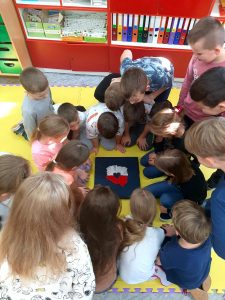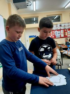 Uczniowie klasy drugiej w ramach innowacji programu “Rozkoduj nowoczesne technologie” wykonali Zadanie 1 pod tytułem “To flaga”. Przygotowali flagę Polski wkomponowaną w mapę wykorzystując do tego szpilki i włóczkę w kolorach narodowych. Dowiedzieli się przy tym wielu informacji o Polsce, jej symbolach i świętach państwowych. Dodatkowo zapoznali się z mapą Polski i położeniem kraju względem sąsiadów.