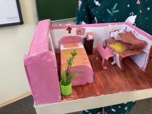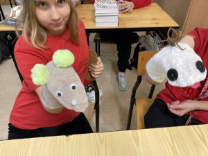 – sporządzali prace plastyczne między innymi:bałwany, pacynkę ze skarpety, aby pomagały im lepiej czytać czy też dokonywały prezentacji swojego pokoju różnymi metodami nawet tworząc pokój za pośrednictwem gier takich jak The Sims czy też Minecraft, a wszystko po to aby ćwiczyć umiejętności opisu w języku angielskim itp.