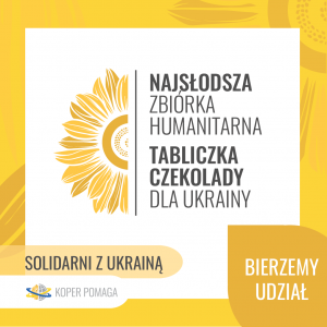 W związku ze zbliżającą się rocznicą wybuchu wojny w Ukrainie, chcielibyśmy w dniu 24 lutego 2023 dołączyć naszą szkołą do akcji Tabliczka czekolady dla Ukrainy. Zbierzmy jak najwięcej tabliczek czekolady, oklejmy je wspólnie życzeniami, podzielmy się tabliczką czekolady dzieląc się nadzieją i chwilą normalności. Przygotowane przez Uczniów czekolady zostaną przekazane do siedziby fundacji Koper Pomaga a następnie zawiezione przez wolontariuszy do obwodu charkowskiego na początku marca.
