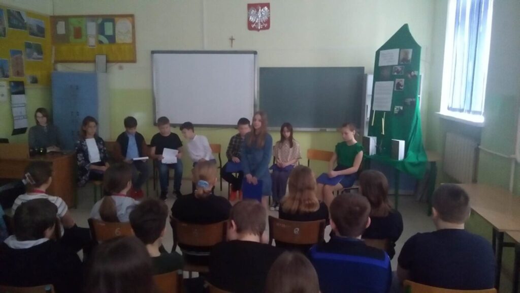 Na dzisiejszym spotkaniu poetyckim uczniowie klasy czwartej i piątej poznali życie i twórczość wspaniałego polskiego poety XX wieku księdza Jana Twardowskiego. Program artystyczny pod opieką p. Marii Graczyk przygotowali członkowie koła polonistycznego: Julia Pilarska, Martyna Kaźmierczak, Joanna Mysłowska, Amelia Granosik, Alan Grzelak, Jan Pietruszewski, Michał Kubiak, Aleksander Rzeźniczak. Kameralna atmosfera, ciekawa choreografia i dobór tekstów wyzwoliły w publiczności różne emocje, wprowadziły niecodzienny nastrój.