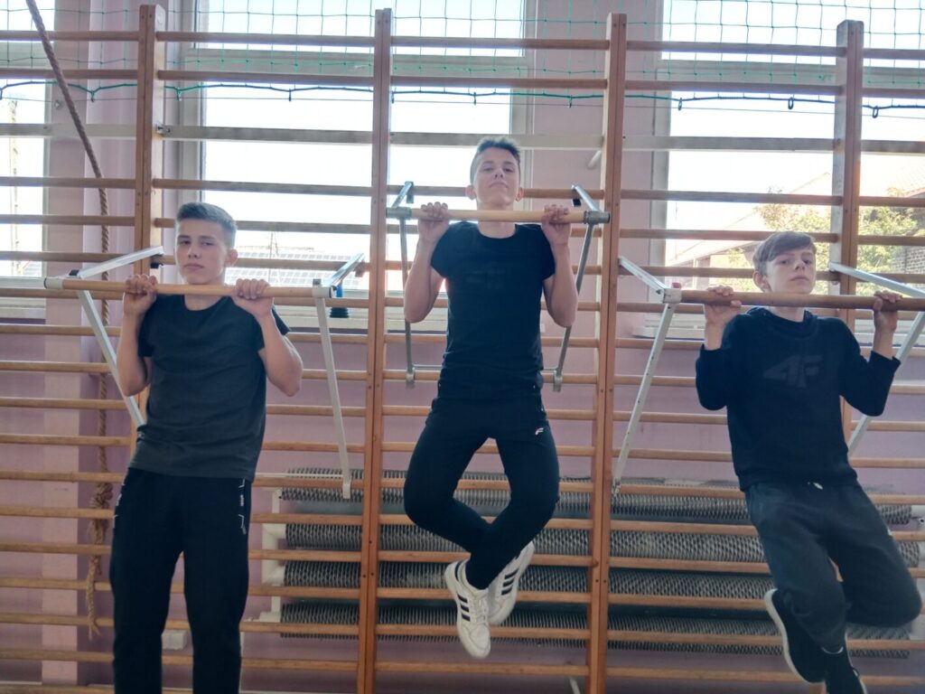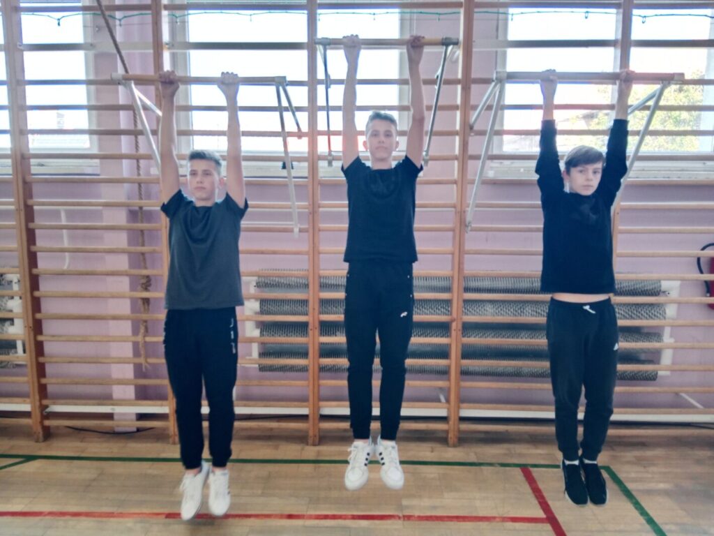 W kwietniu i maju odbyły się w naszej szkole dwa konkursy sportowe dla klas 7-8. Pierwszym z nich był konkurs siłowy dla chłopców w podciąganiu na drążku z własną masą ciała. Celem zawodów była popularyzacja ćwiczeń siłowo- wytrzymałościowych oraz poprawnej techniki wykonywanych ćwiczeń. Udział w zawodach wzięło po dwóch reprezentantów klas wyłonionych podczas wcześniejszych eliminacji. W fazie finałowej konkursu rywalizowało sześciu uczestników. O miejscach w konkursie decydowała ilość poprawnie wykonanych powtórzeń od pełnego wyprostu ramion do podciągnięcia z brodą nad drążkiem wykonanych nadchwytem. O miejscach na podium zadecydować musiała dogrywka ponieważ trzech zawodników osiągnęło ten sam wynik. Po drugiej serii zdecydowanym zwycięzcą okazał się Krzysztof Majchrzak, który wyprzedził plasujących się ex aequo na drugiej pozycji Artura Olejniczaka i Piotra Majchrzaka.