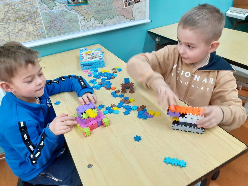 Uczniowie w świetlicy szkolnej miło spędzają czas – rozwijają swoje zdolności plastyczne, bawią się i układają z klocków ciekawe budowle. Zrealizowane pomysły prezentujemy w galerii.