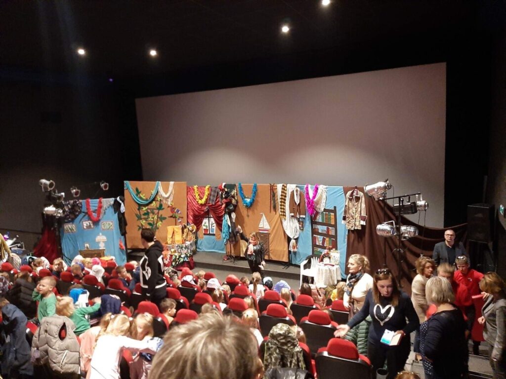 W dniu 18 maja uczniowie klas I-III uczniowie wraz z nauczycielkami wybrali się do kina „Górnik” w Łęczycy na sztukę teatralną pt. „Szalone Bajeczki z Dziadunia Teczki”, którą przedstawił Kielecki Teatr Lektur. Wiersze są skarbnicą żywej mądrości” -taka oto myśl przewodziła całemu spektaklowi. Kto z nas nie zna takich utworów jak: „Okulary”, „Kłamczucha”, „Katar”, „Rzepka”, ” Sroka”, „Żaba”, „Skarżypyta”, „Sum”, „Aeroplan”. To tylko niektóre z wierszy, które w ciekawy sposób zostały przedstawione dzieciom. Światła, muzyka, rekwizyty, dekoracje wszystko to skutecznie skupiło uwagę dzieci. Oplecione bajkową scenerią wiersze sprawiły, że dzieci same głośno odpowiadały na stawiane w nich pytania. Zabawne dialogi prowadzone przez aktorów, kwitowane były przez najmłodszych salwami śmiechu. Największym przeżyciem dla dzieci było zaproszenie na scenę i wspólna inscenizacja wiersza: „Rzepka”. Na koniec wszystkie dzieci razem z aktorami zaśpiewały piosenkę „Fantazja”.