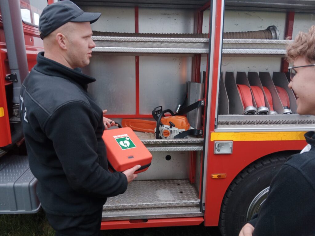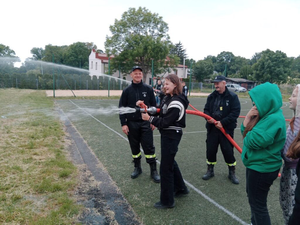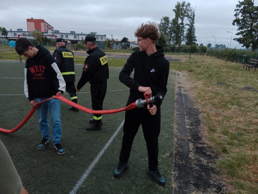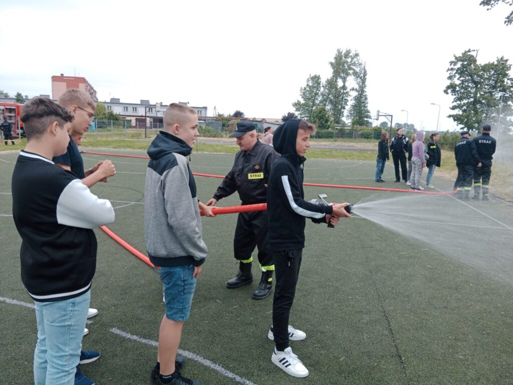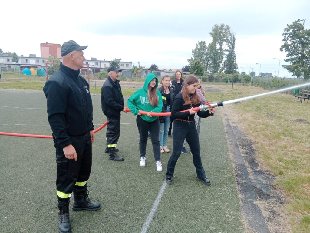 Dnia 2 czerwca w ramach lekcji edukacji dla bezpieczeństwa uczniowie klas ósmych naszej szkoły uczestniczyli w pokazie strażackim zorganizowanym przez Jednostkę Ochotniczej Straży Pożarnej w Leśmierzu. Zajęcia miały na celu propagowanie bezpieczeństwa przeciwpożarowego, zapoznanie się ze sprzętem jakim dysponuje jednostka oraz poznanie specyfiki pracy strażaka. Każdy uczeń mógł zobaczyć z bliska a nawet dotknąć urządzeń używanych podczas akcji. Strażacy zaprezentowali możliwości samochodu oraz sprzętu znajdującego się na jego wyposażeniu. Omówione zostały także zasady pierwszej pomocy przedmedycznej. Na koniec pokazu uczniowie zostali poinformowani o trwającym naborze do OSP w Leśmierzu, poznali ofertę i wymagania dla kandydatów.