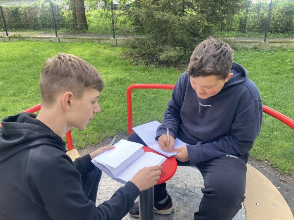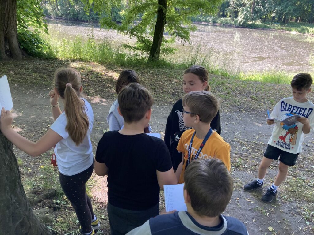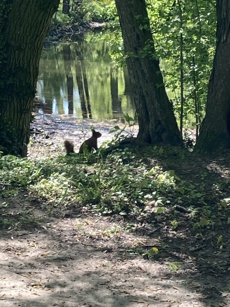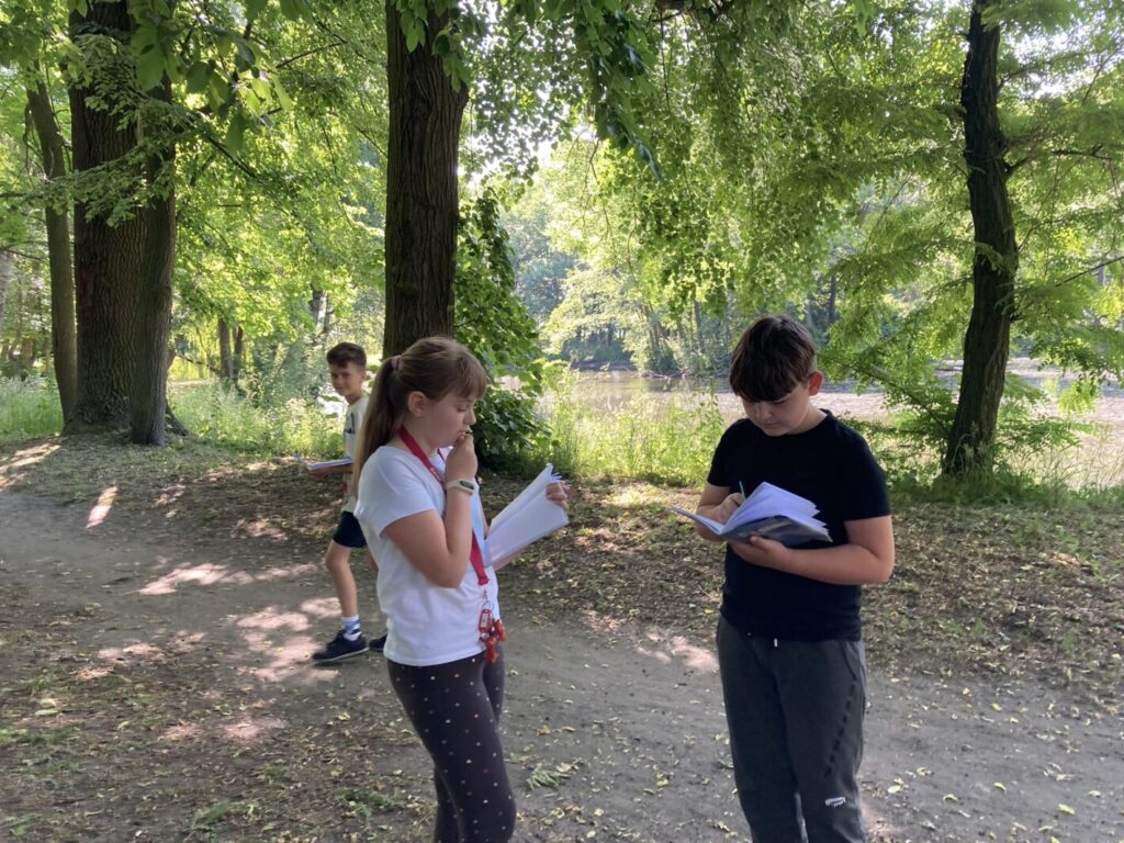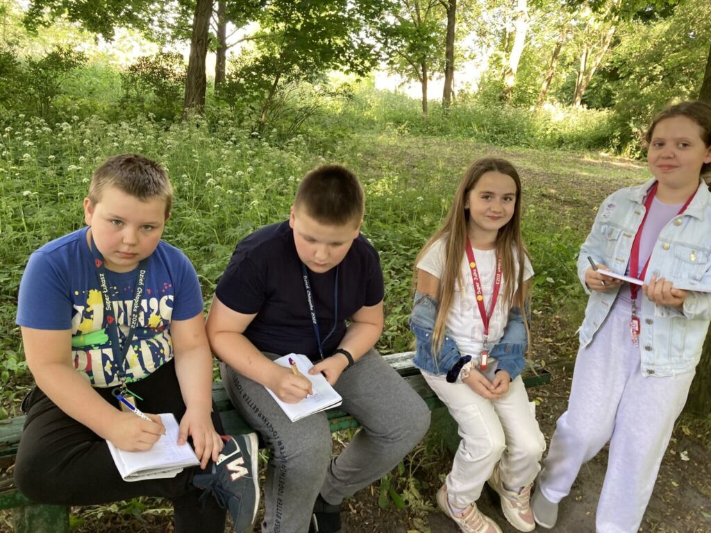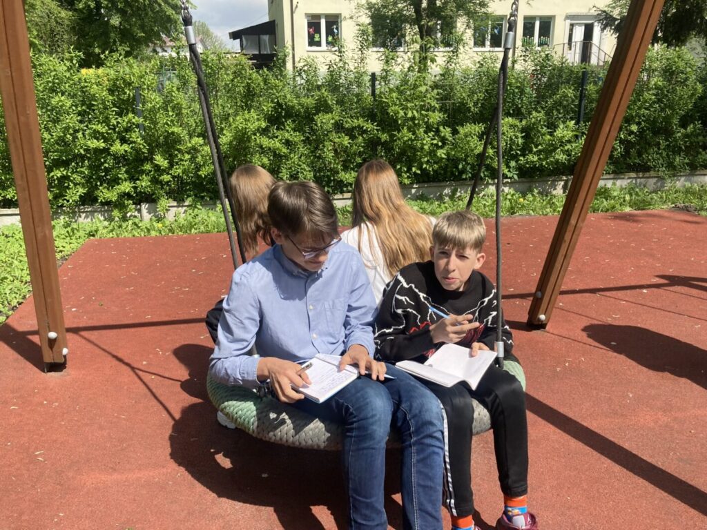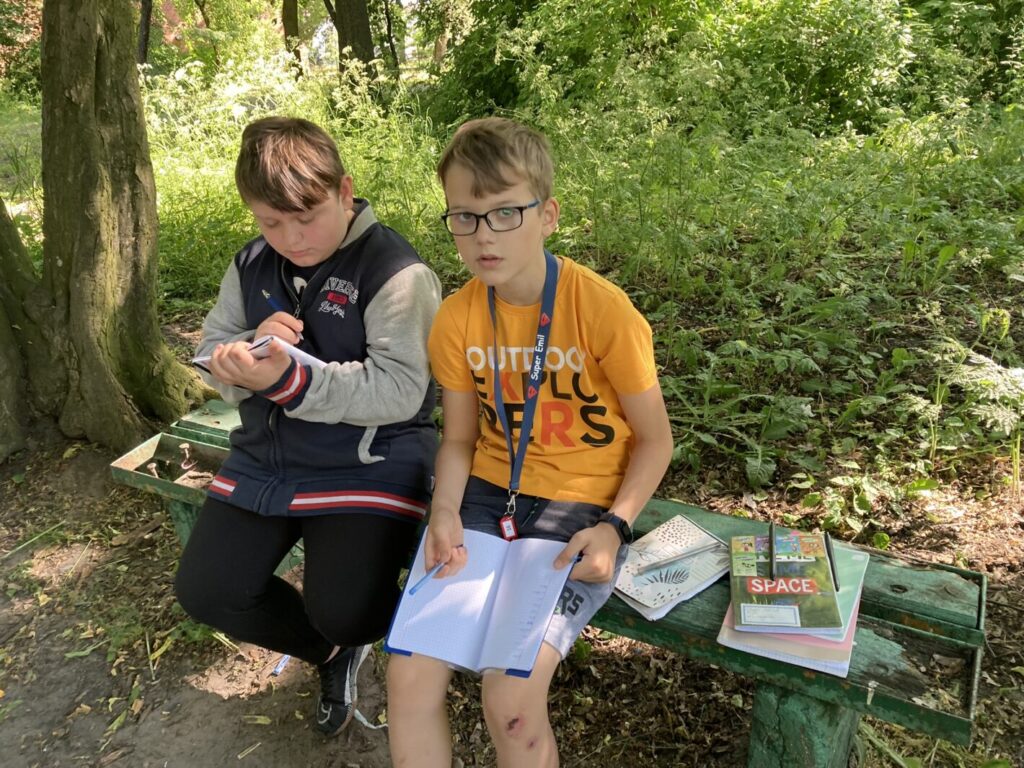 – mieliśmy lekcje w terenie szukając nowych słów i tworząc opisy. Towarzyszyła nam nawet nasza wiewiórka przy zabawach językowych :),