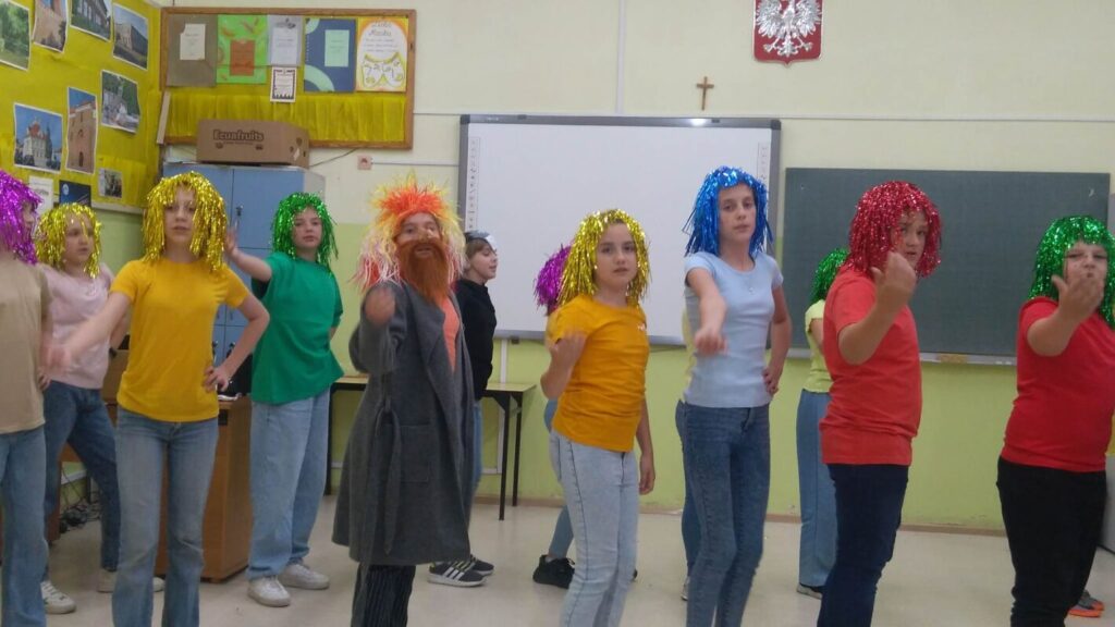 Dnia 14 czerwca o godzinie 14:30 w naszej szkole zaprezentowano przedstawienie pt. “Witajcie w naszej bajce” na motywach lektury „Akademia Pana Kleksa” oraz wybranych wierszy Jana Brzechwy. W rolę niesamowitych postaci bajkowych wcielili się wszyscy uczniowie klasy czwartej. Na spektakl zostali zaproszeni rodzice dzieci.