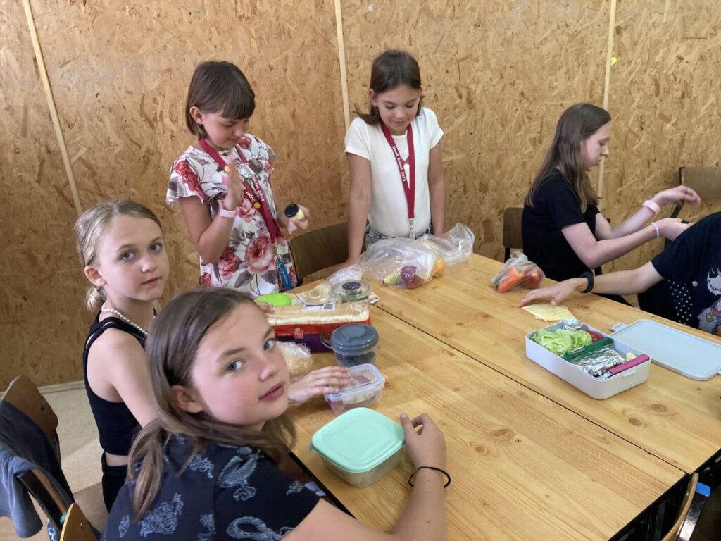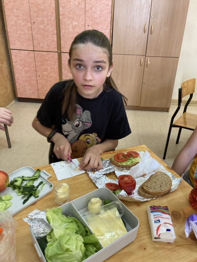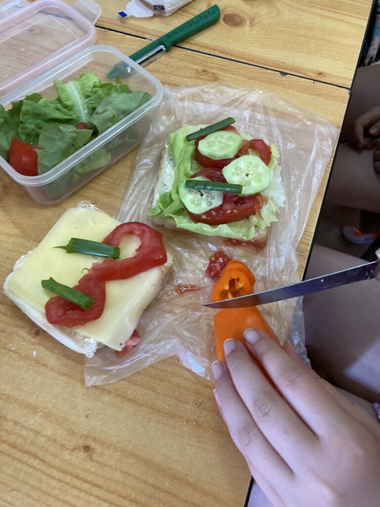Mianowicie przygotowywaliśmy przepyszne kanapki oraz mieliśmy do wykonania zadania podczas gier terenowych, ćwicząc przy tym język angielski na świeżym powietrzu.