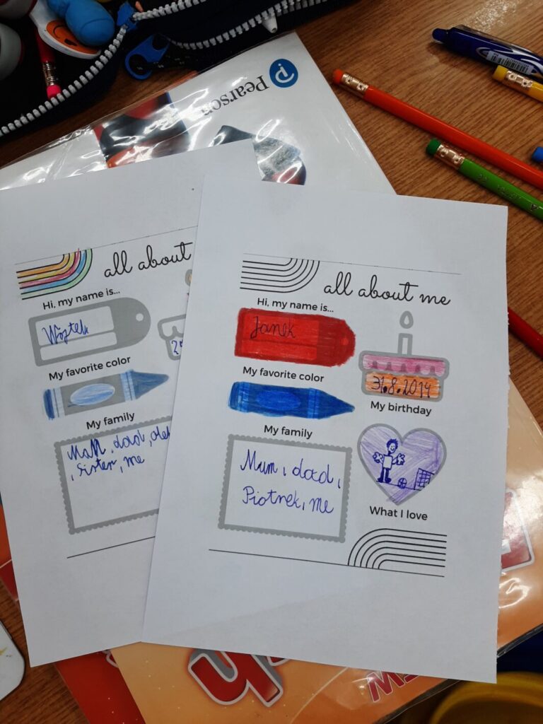 Uczniowie wykonali już pierwsze zadanie projektu: Book abot me, polegające na stworzeniu książeczki o sobie i swojej rodzinie.