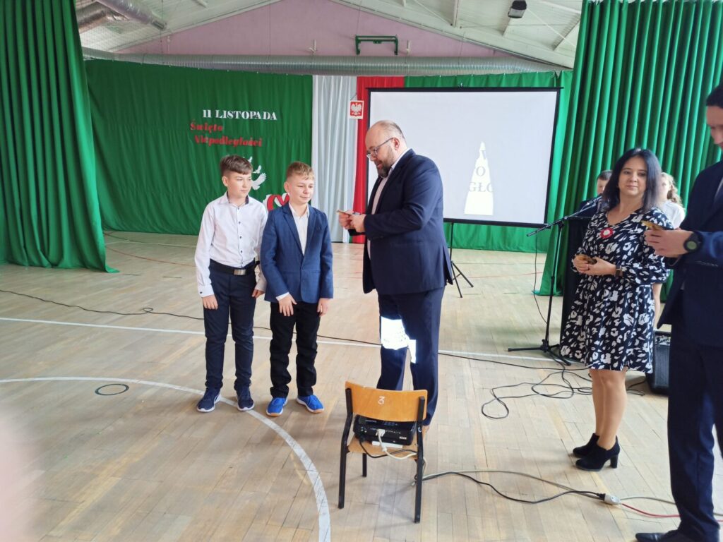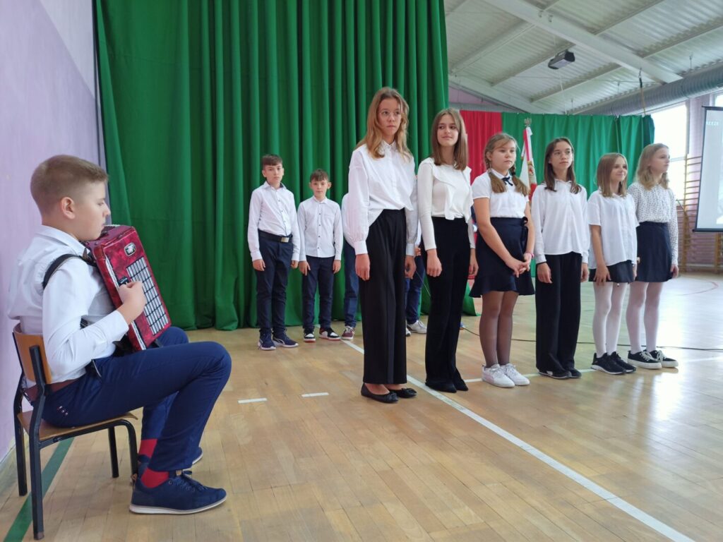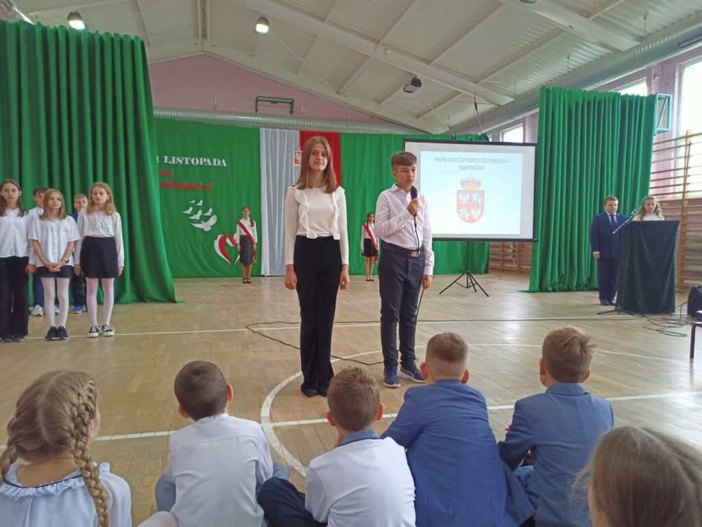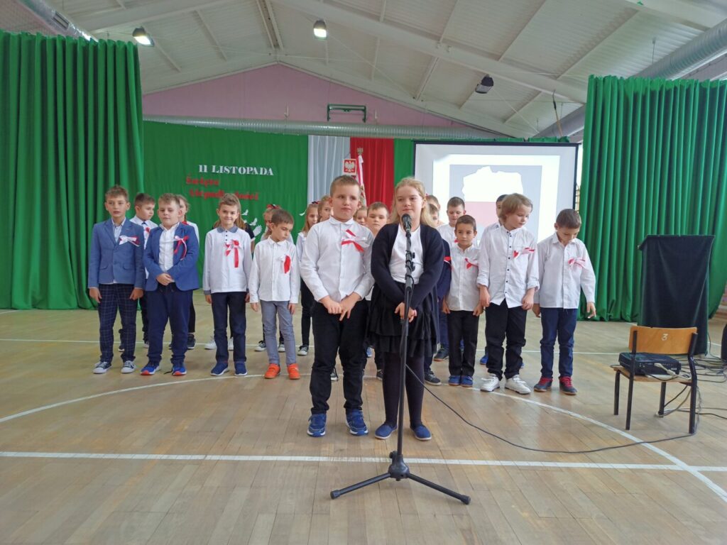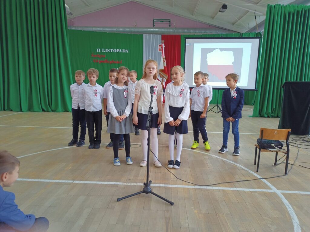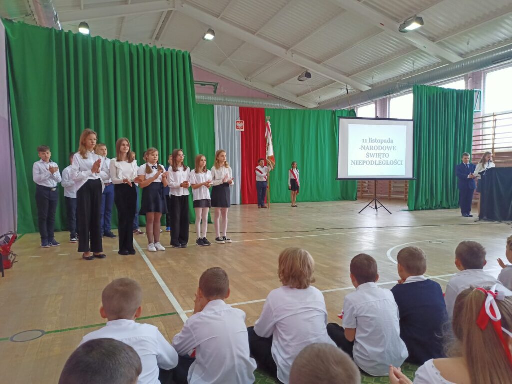 W piątek, 10. listopada, w naszej szkole odbyła się uroczysta akademia z okazji 105 Rocznicy Odzyskania przez Polskę Niepodległości. Wszyscy uczniowie, nauczyciele oraz pozostali pracownicy szkoły zebrali się na sali gimnastycznej, by obejrzeć montaż słowno-muzyczny, zaprezentowany przez uczniów klasy VI oraz nauczania początkowego, w którym młodzi artyści przypomnieli zebranym, jak wyglądała droga Polaków do przywrócenia Polski na mapach świata.