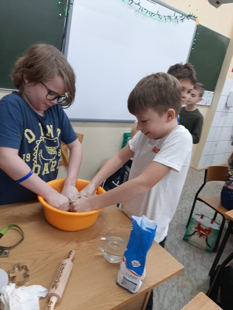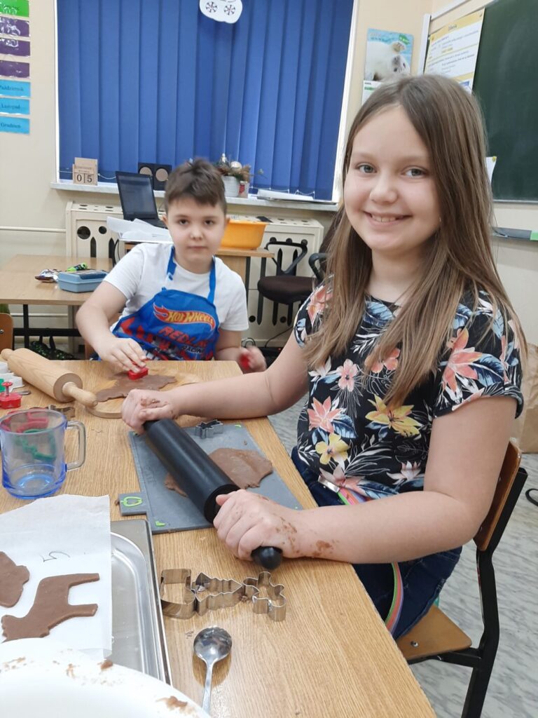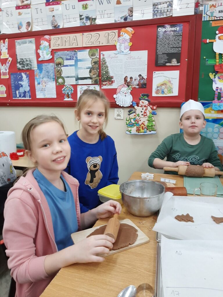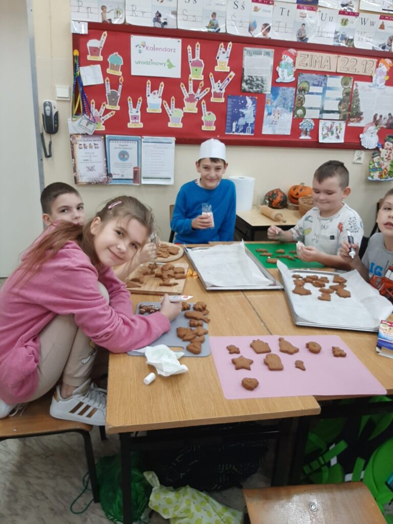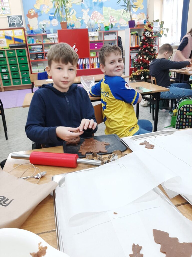 Dnia 7 grudnia 2023 w klasie trzeciej można było poczuć świąteczny klimat. A to za sprawą pierniczków. I to nie tych toruńskich, ale leśmierskich – własno wypiekanych przez uczniów.