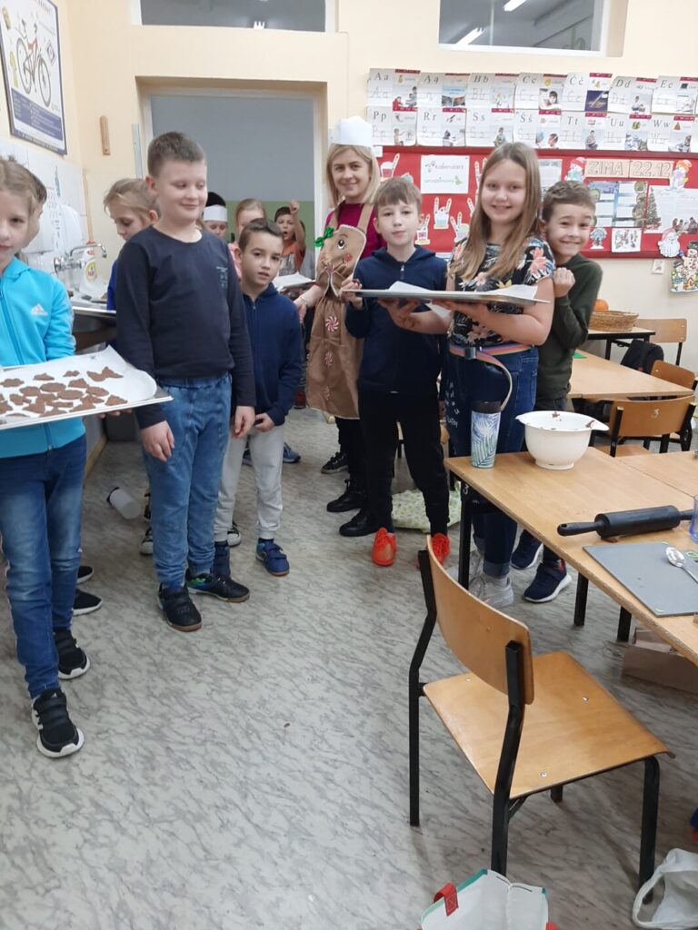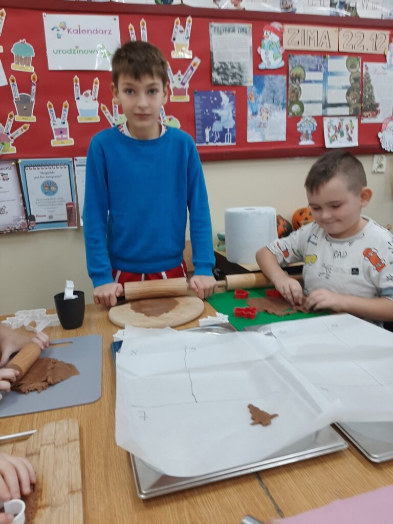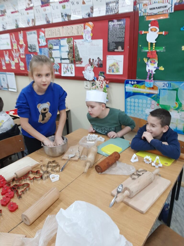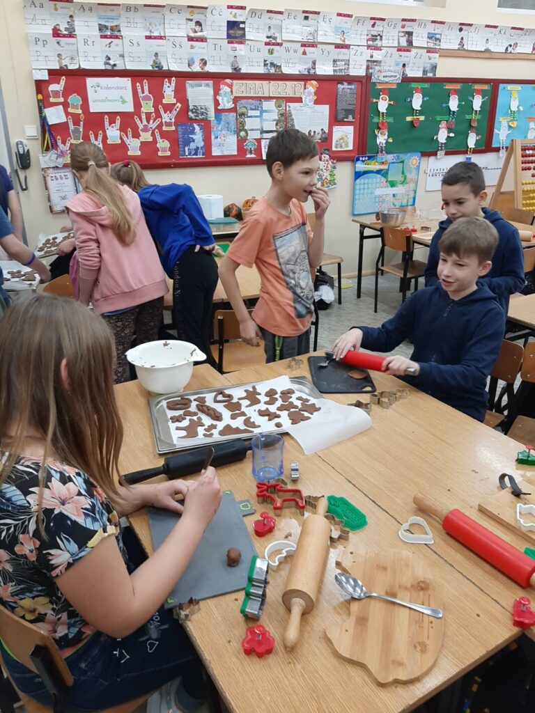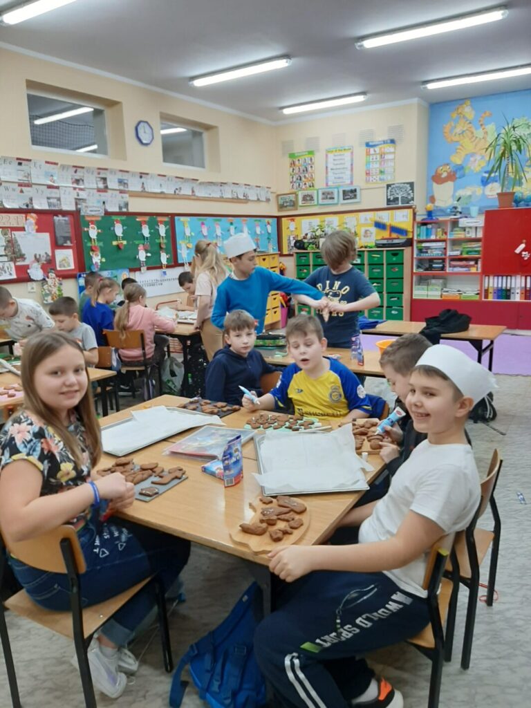 Dnia 7 grudnia 2023 w klasie trzeciej można było poczuć świąteczny klimat. A to za sprawą pierniczków. I to nie tych toruńskich, ale leśmierskich – własno wypiekanych przez uczniów.