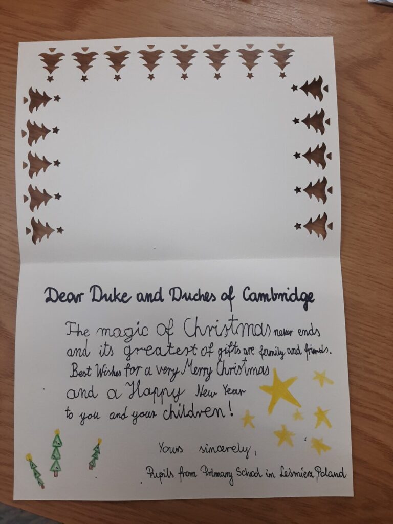 Najbardziej interesujące dla uczniów było ostatnie zadanie, zwłaszcza, że rodzina królewska-księżna Kate i William z dziećmi odpisali na ich korespondencję!