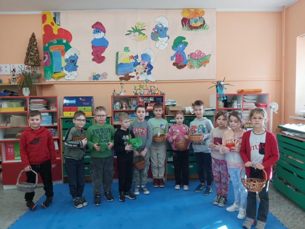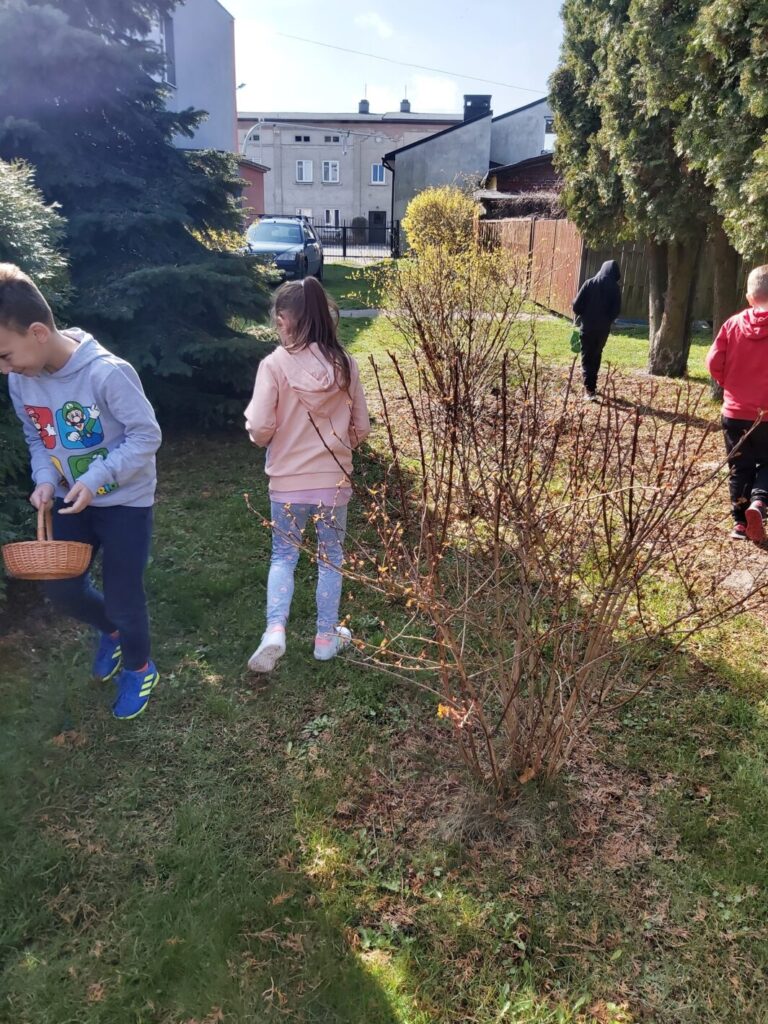 Po raz pierwszy uczniowie klasy pierwszej wyruszyli na plac szkolny na poszukiwania jajeczek, ukrytych przez zajączka wielkanocnego w różnych zielonych zakamarkach placu. Wspólna zabawa oraz pozytywna rywalizacja sprawiły dzieciom dużo zabawy i radości.