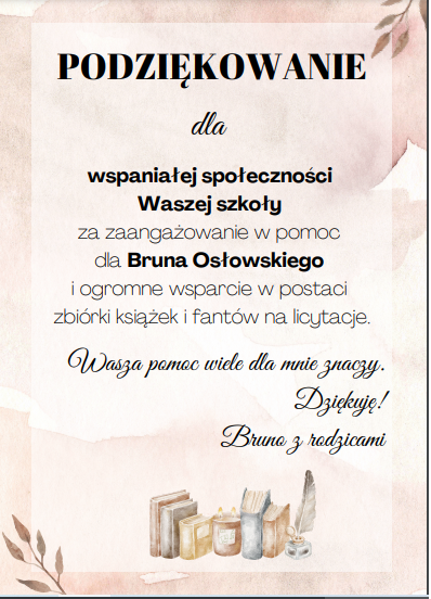 Wszystkim darczyńcom bardzo dziękujemy za włączenie się w akcję. Szczególne podziękowania za okazane serce należą się uczniom klas I-VIII, ich rodzicom i nauczycielom.![]()