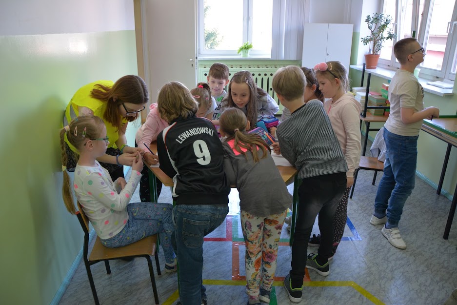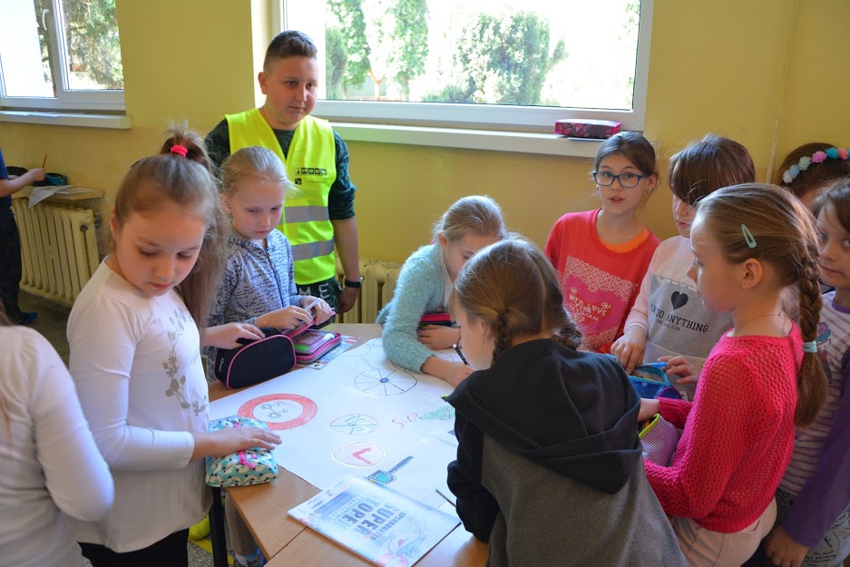 Celem projektu było popularyzowanie wśród młodszych kolegów właściwych nawyków i zasad bezpieczeństwa w ruchu drogowym. Dziecko uczestnikiem ruchu drogowego – pasażer, pieszy, rowerzysta.