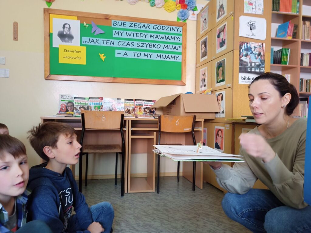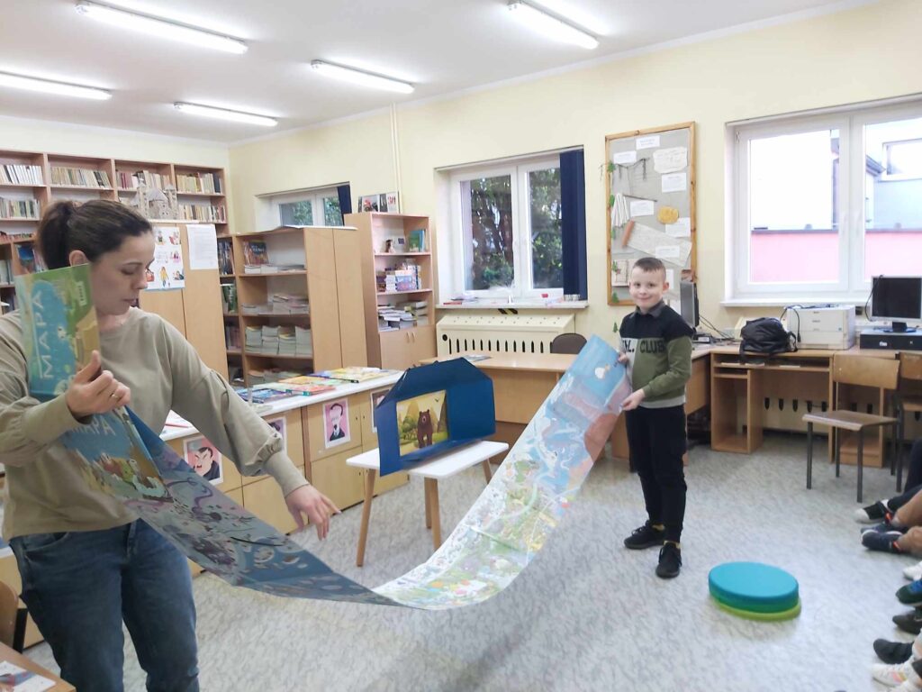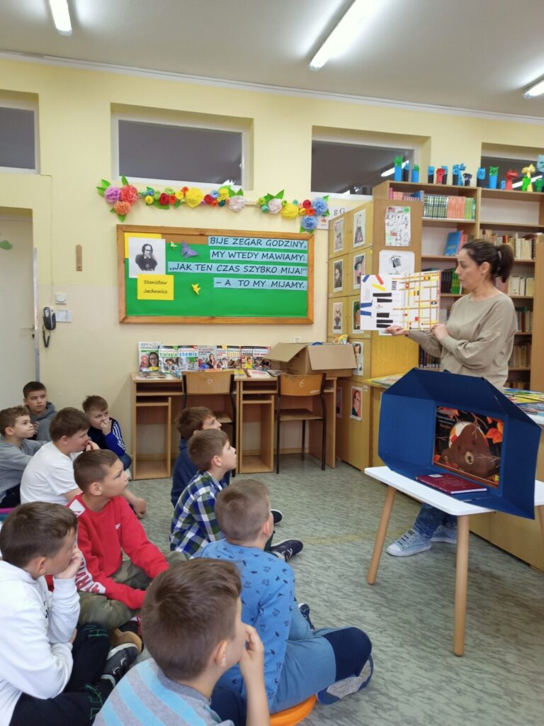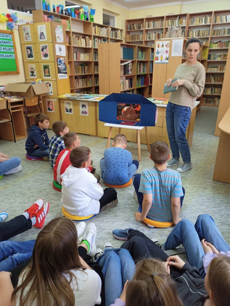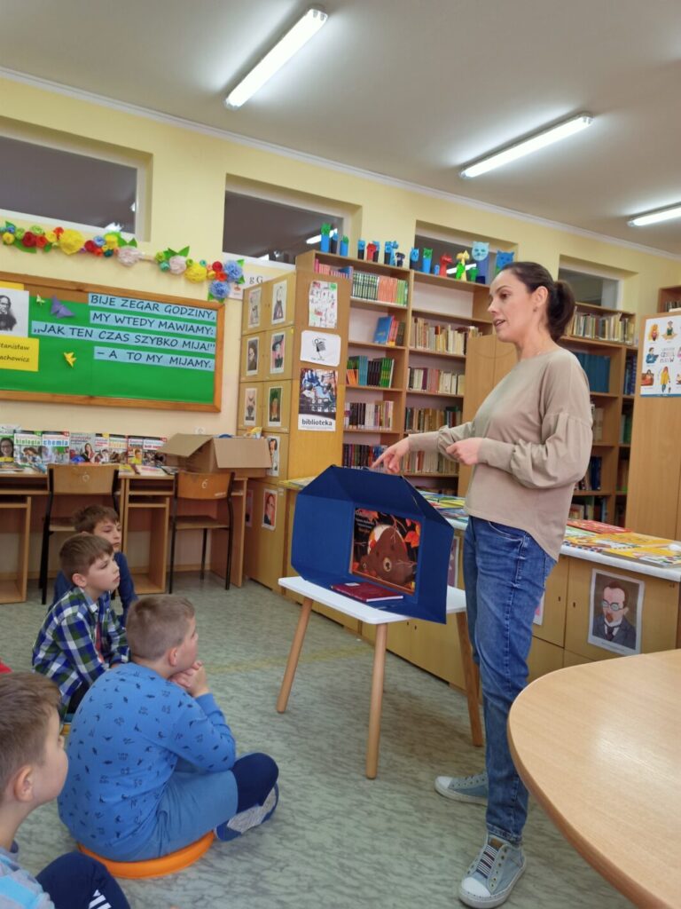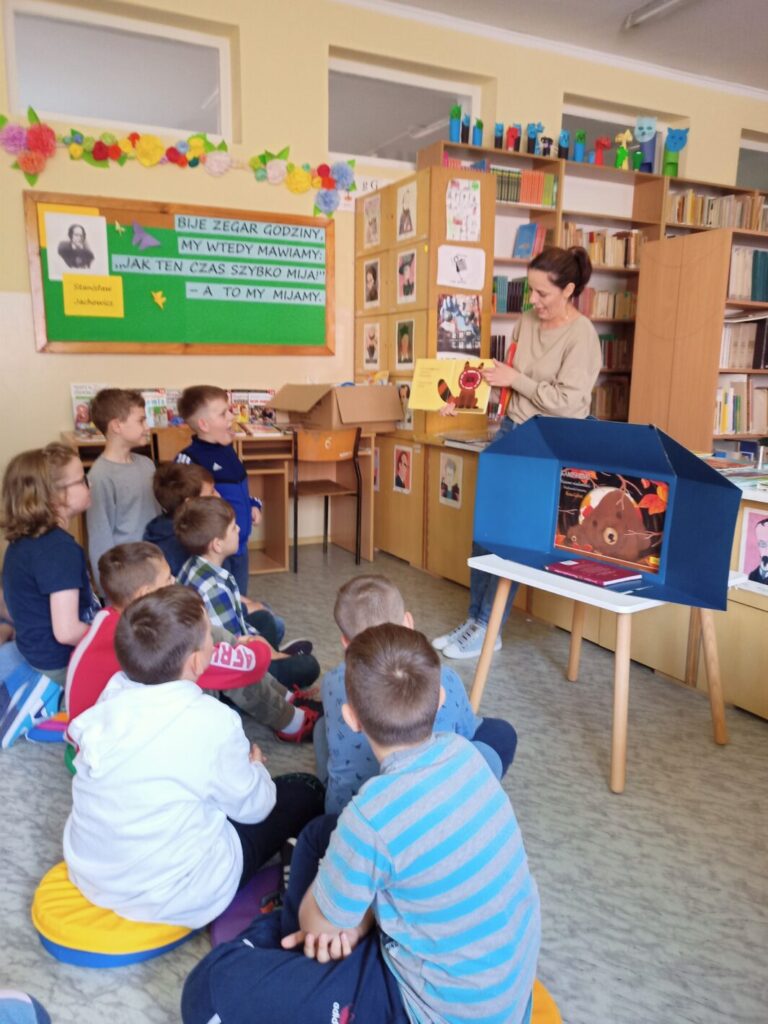Z tej okazji biblioteka szkolna gościła uczniów klas I-III na wystawie pod hasłem “Książka niejedno ma imię”. W czasie spotkań uczniowie poznali różne formy książki: