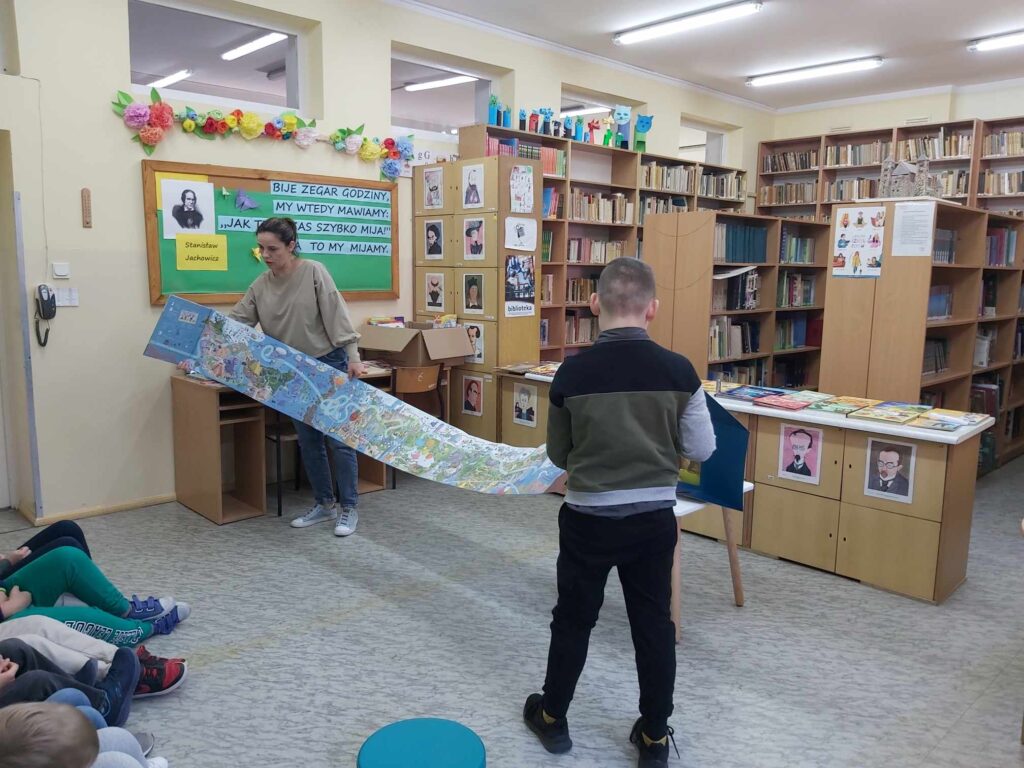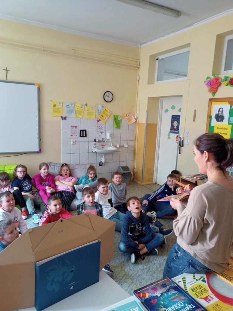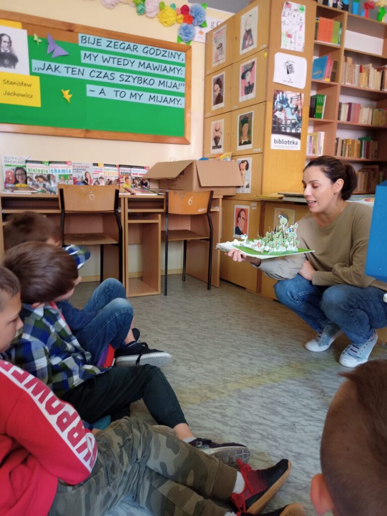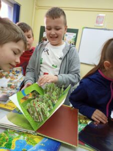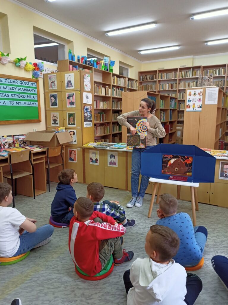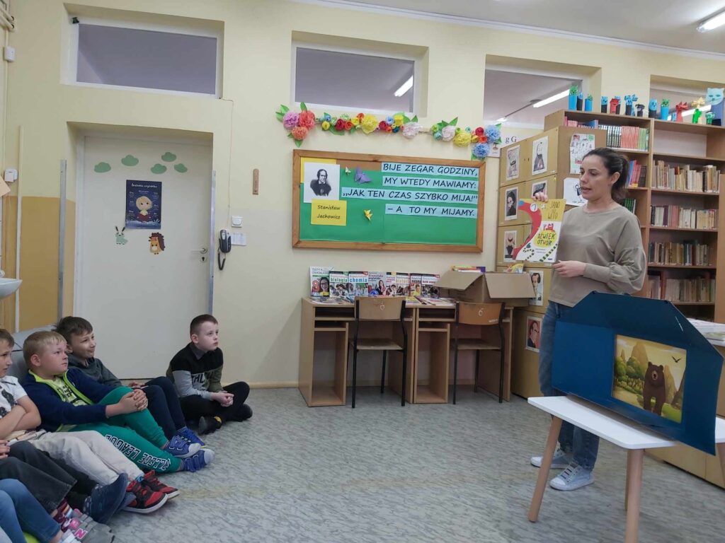 Z tej okazji biblioteka szkolna gościła uczniów klas I-III na wystawie pod hasłem “Książka niejedno ma imię”. W czasie spotkań uczniowie poznali różne formy książki: