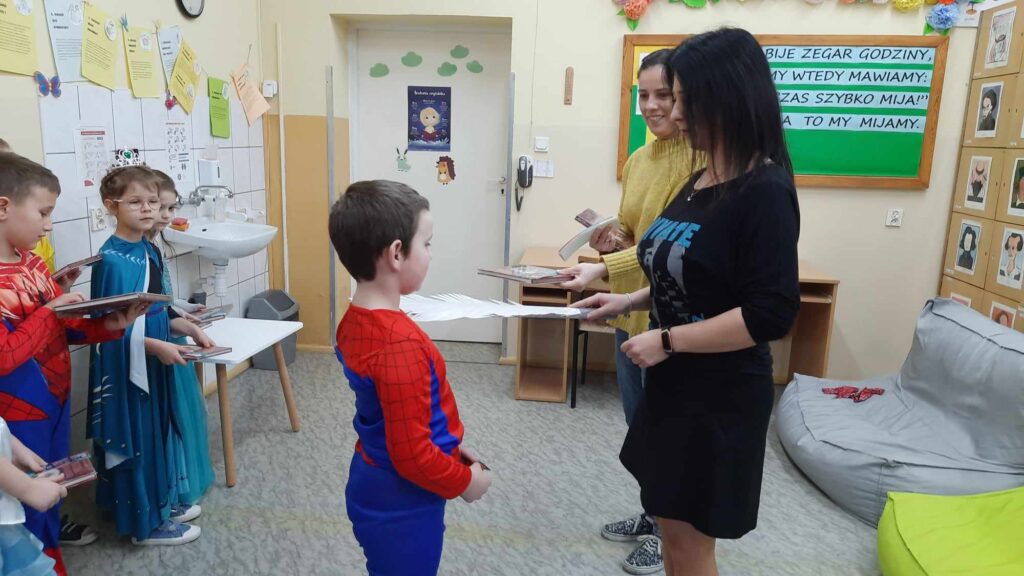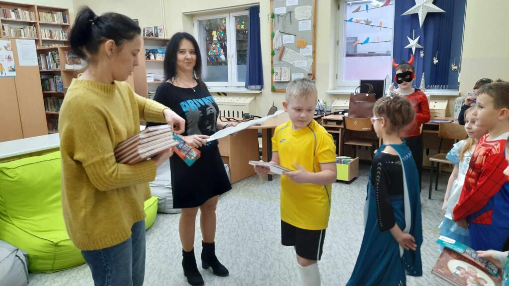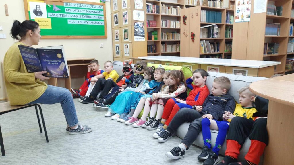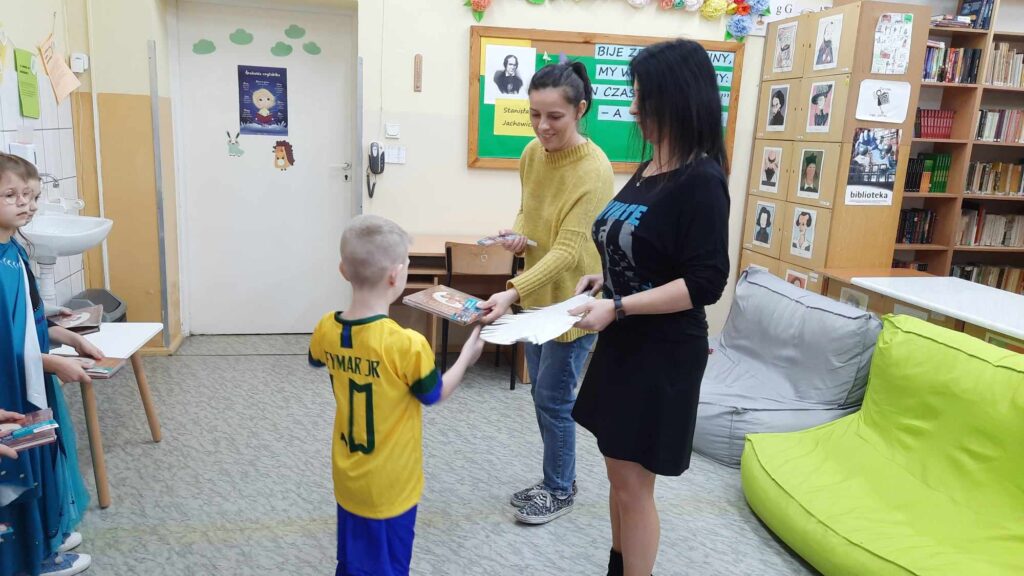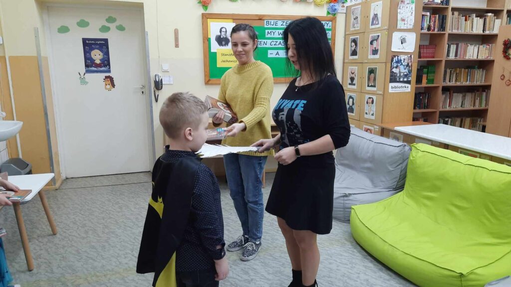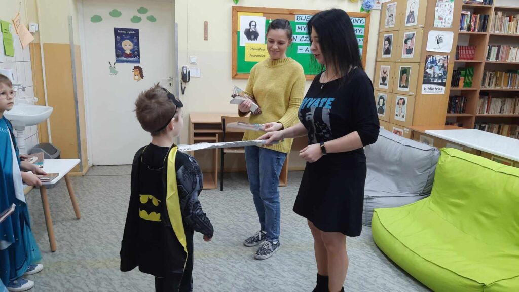 Jak co roku, biblioteka szkolna uroczyście powitała w swoim gronie nowych czytelników – uczniów klasy pierwszej. W czasie spotkania, które poprzedziło pasowanie na czytelnika, uczniowie zapoznali się z zasadami korzystania z biblioteki szkolnej, wspólnie przypomnieli (lub poznali) reguły dotyczące obchodzenia się z książkami, a także wysłuchali niezwykłego opowiadania o magicznej bibliotekarce i jej bibliotece – “Wypożyczalnia skrzydeł”. W uroczystości uczestniczyła pani wicedyrektor, Katarzyna Modlińska, która pasowała pierwszoklasistów na czytelników biblioteki szkolnej. Nowi czytelnicy, po złożeniu uroczystej przysięgi, otrzymali również książki, ofiarowane przez Instytut Książki, w ramach kampanii “Mała Książka – Wielki Człowiek” – tym razem była to “Wnuczka antykwariusza”, autorstwa Justyny Bednarek, z dołączoną broszurą dla rodziców, w której można przeczytać o “niezwykłej mocy zwykłego czytania”.