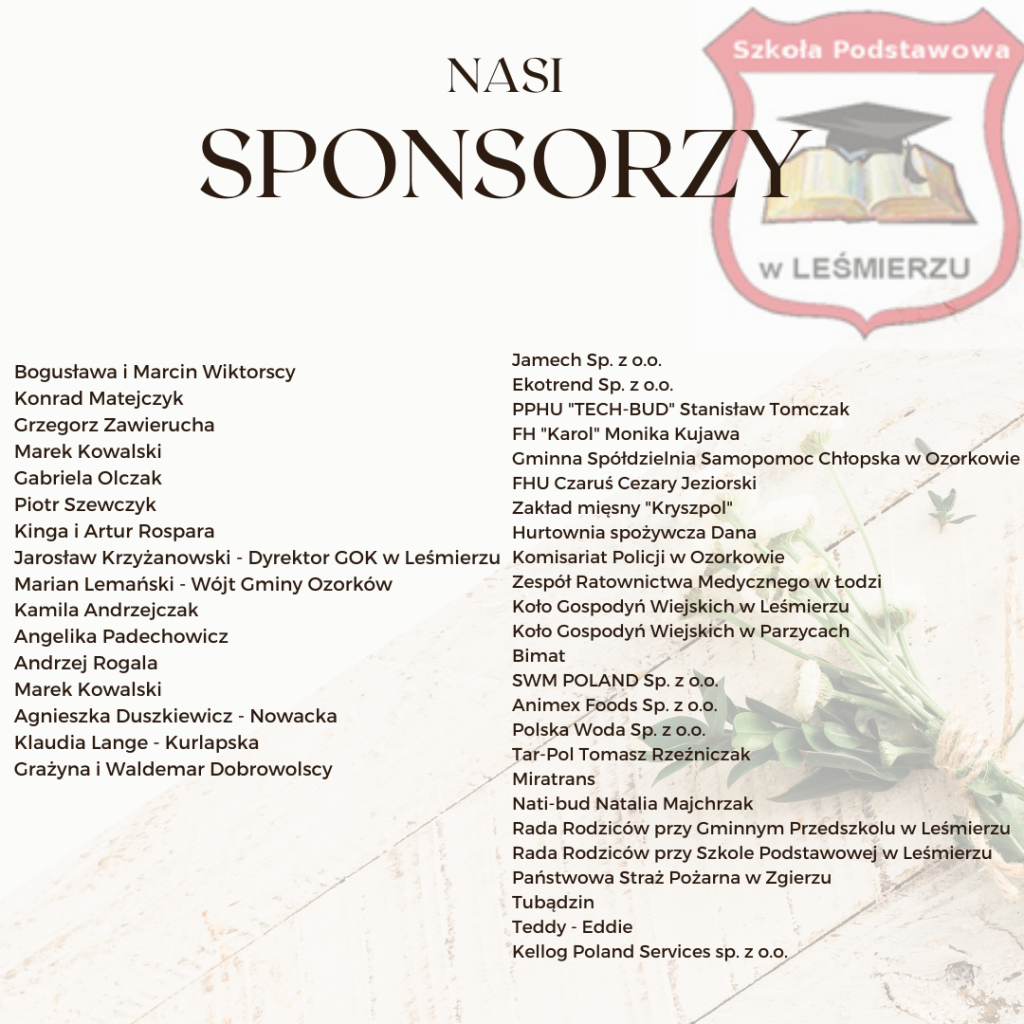 Podziękowanie dla Sponsorów: Dziękujemy serdecznie naszym sponsorom za wsparcie, które umożliwiło zorganizowanie tego wyjątkowego wydarzenia.