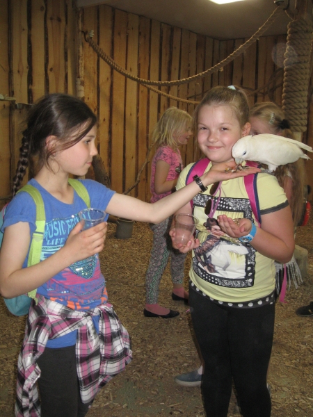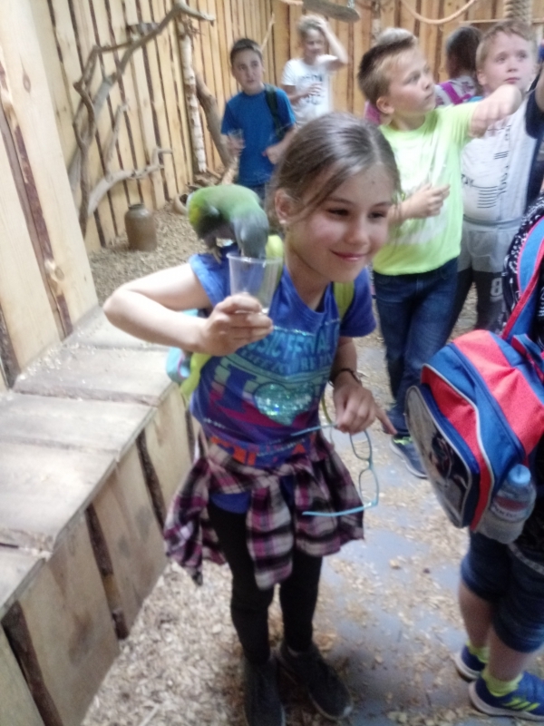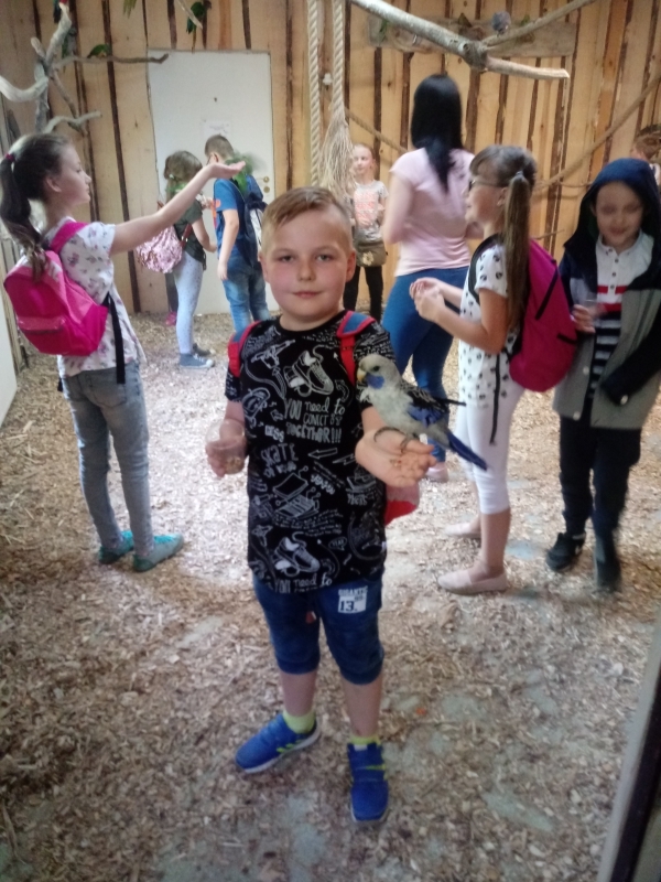 W ramach programu edukacji ekologicznej „Ochrona powietrza jest dzisiaj konieczna”, który realizowany jest w naszej szkole uczniowie klasy III a i III b Szkoły Podstawowej 9 maja br. wybrali się na wycieczkę do Łodzi. Na początku dzieci udały się do Planetarium EC1 na seans pt.”Kosmos dla najmłodszych”. W trakcie trwającego 45 minut pokazu wszyscy odbyli magiczną podróż przez Układ Słoneczny. Pełni emocji reagowali na wszelkie zjawiska, które zobaczyli na niebie i we wszechświecie. Kolejnym punktem wycieczki była papugarnia „Papupapi”. Dzieci miały okazję poznać tam różne gatunki papug oraz wzbogacić swoje wiadomości na temat tych barwnych i egzotycznych ptaków. Oswojone ptaki siadały wszystkim na głowach, rękach i ramionach. Największą atrakcją była jednak możliwość karmienia papug i ich głaskanie. Wycieczka bardzo podobała się trzecioklasistom, którzy zadowoleni i uśmiechnięci wrócili do szkoły.
