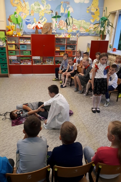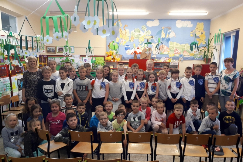 17 maja 2018 r. odwiedziły naszą szkołę dzieci sześcioletnie z pobliskiego przedszkola. Celem tej wyprawy było bliższe poznanie szkoły, aby przyszłym pierwszakom łatwiej było pokonać stres związany z przyjściem do niej 1 września. Na początku, trochę nieśmiało, ale z dużym zaciekawieniem dzieci oglądały przedstawienie o patronie szkoły-Stanisławie Jachowiczu w wykonaniu klasy 3a. Potem odwiedziły między innymi salę gimnastyczną, świetlicę oraz sale klas 1-3, gdzie mogły zobaczyć, jak w czasie zajęć pracują ich starsi koledzy.