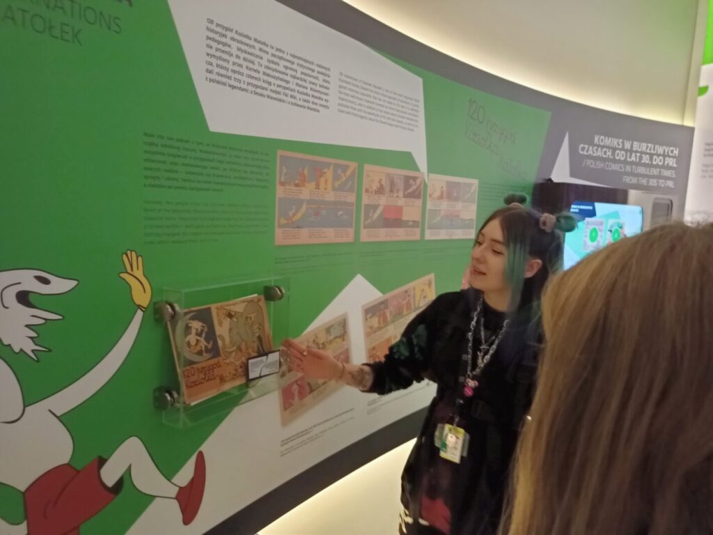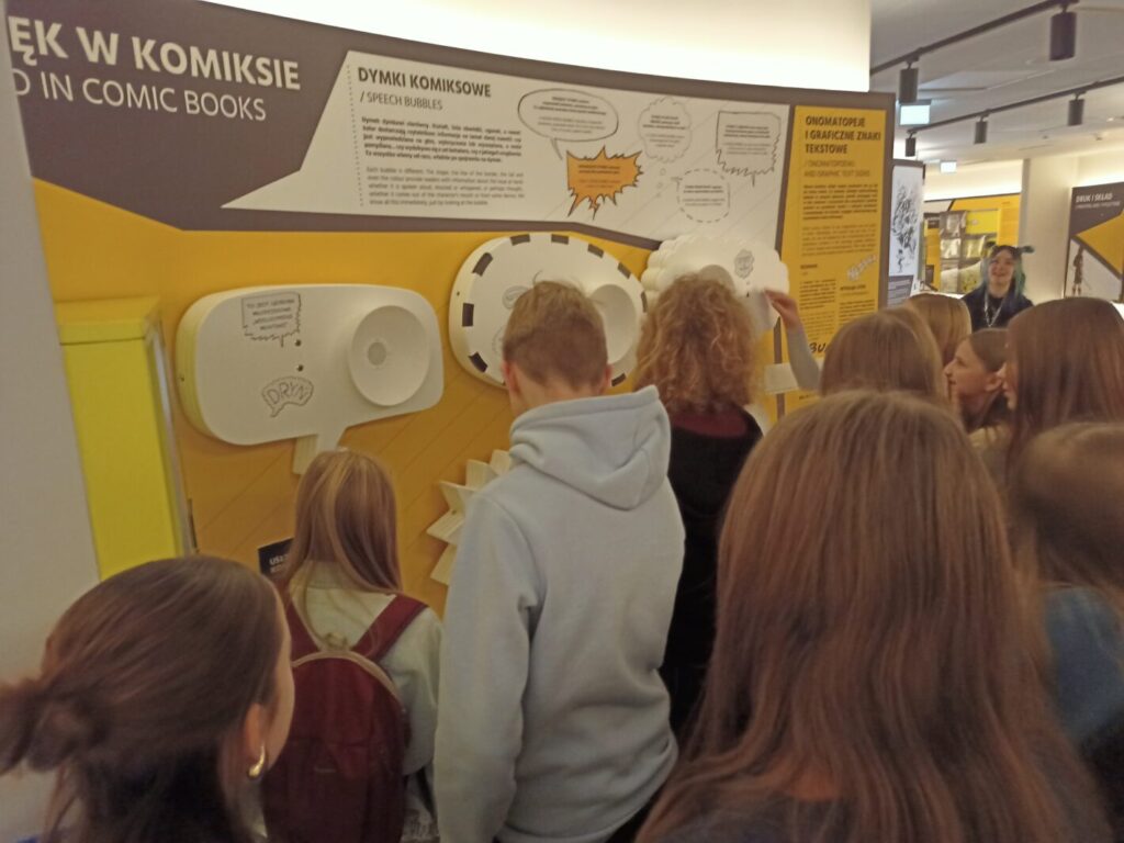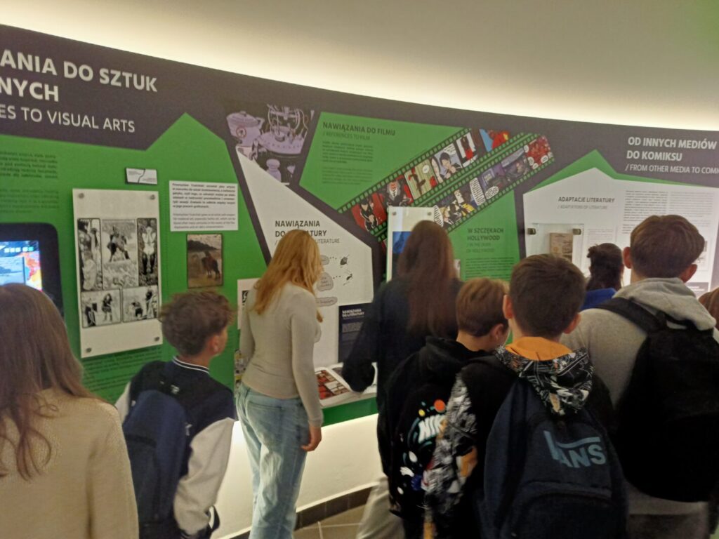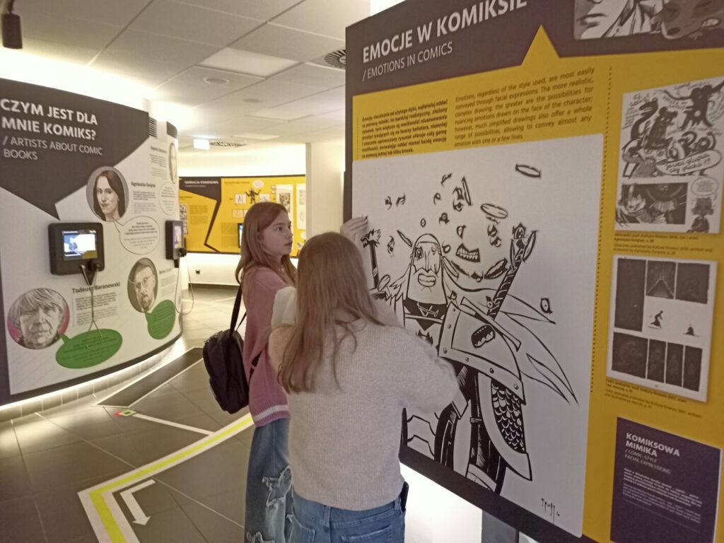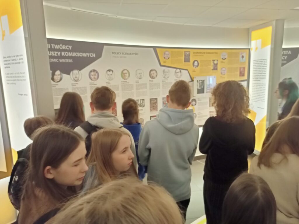 Po wizycie na Targach Książki młodzież udała się do pobliskiego Centrum Komiksu i Narracji Interaktywnej, gdzie w nowoczesnych wnętrzach poznała historię i tajniki powstawania komiksów, a także została wprowadzona w proces tworzenia gier wideo. Wystawa cieszyła się dużym zainteresowaniem zwiedzających nie tylko ze względu na atrakcyjną tematykę, ale – przede wszystkim – jej interaktywność. Uczniowie mogli dotykać poszczególnych elementów ekspozycji, sprawdzić się w roli ilustratora, czy twórcy dźwięków gier. Nie lada atrakcją była też możliwość zagrania w gry komputerowe, które były popularne w latach ‘90 XX wieku.