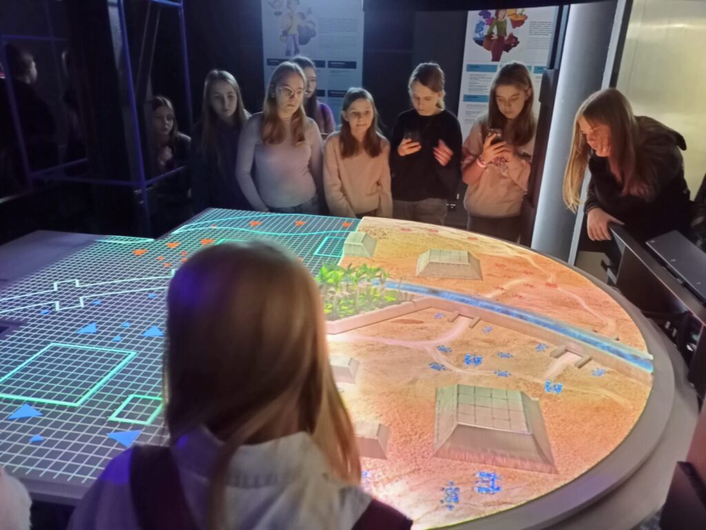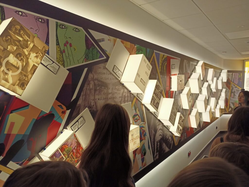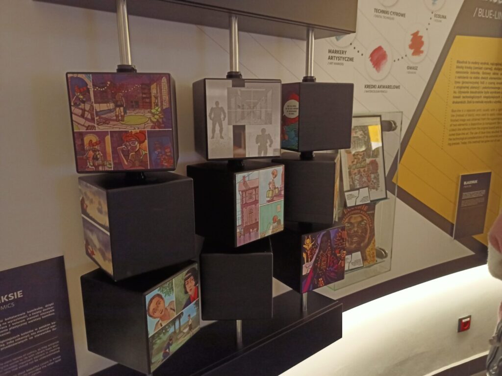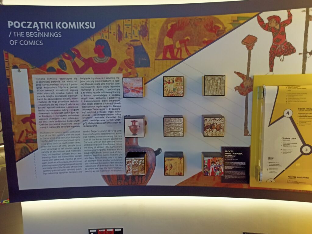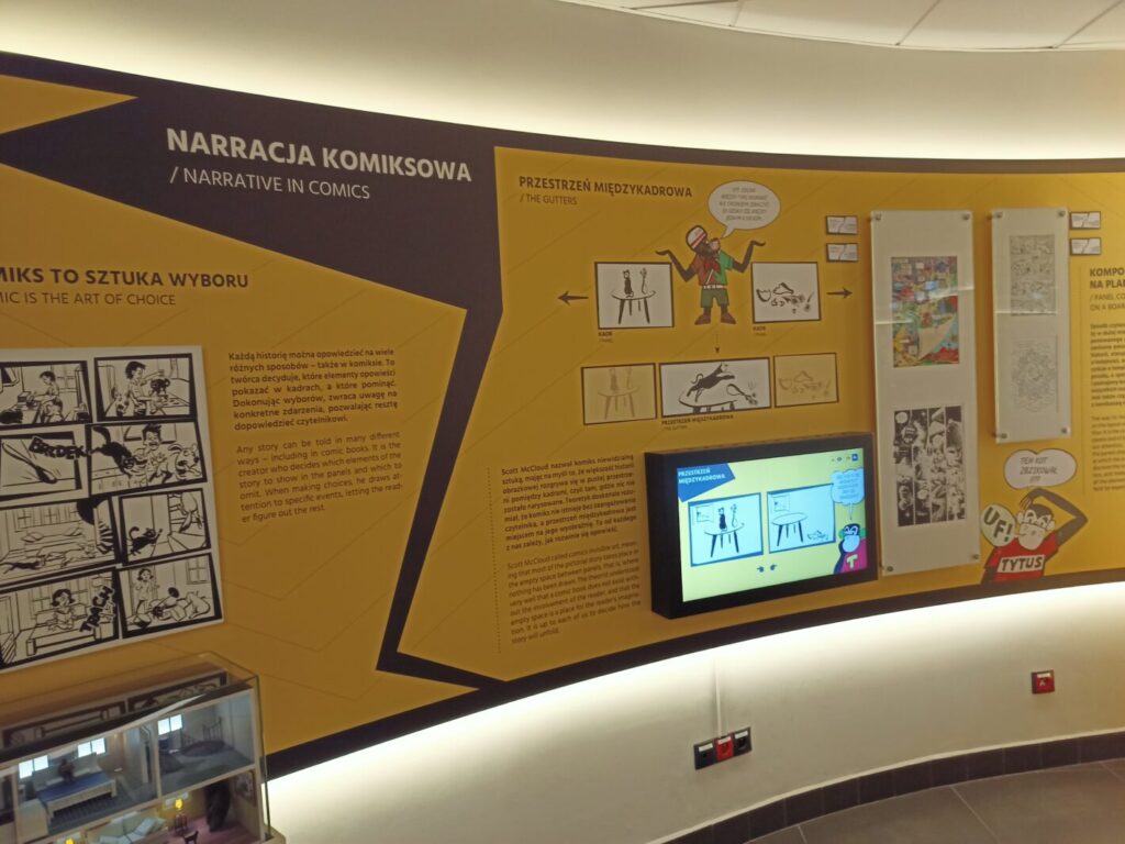 Po wizycie na Targach Książki młodzież udała się do pobliskiego Centrum Komiksu i Narracji Interaktywnej, gdzie w nowoczesnych wnętrzach poznała historię i tajniki powstawania komiksów, a także została wprowadzona w proces tworzenia gier wideo. Wystawa cieszyła się dużym zainteresowaniem zwiedzających nie tylko ze względu na atrakcyjną tematykę, ale – przede wszystkim – jej interaktywność. Uczniowie mogli dotykać poszczególnych elementów ekspozycji, sprawdzić się w roli ilustratora, czy twórcy dźwięków gier. Nie lada atrakcją była też możliwość zagrania w gry komputerowe, które były popularne w latach ‘90 XX wieku.