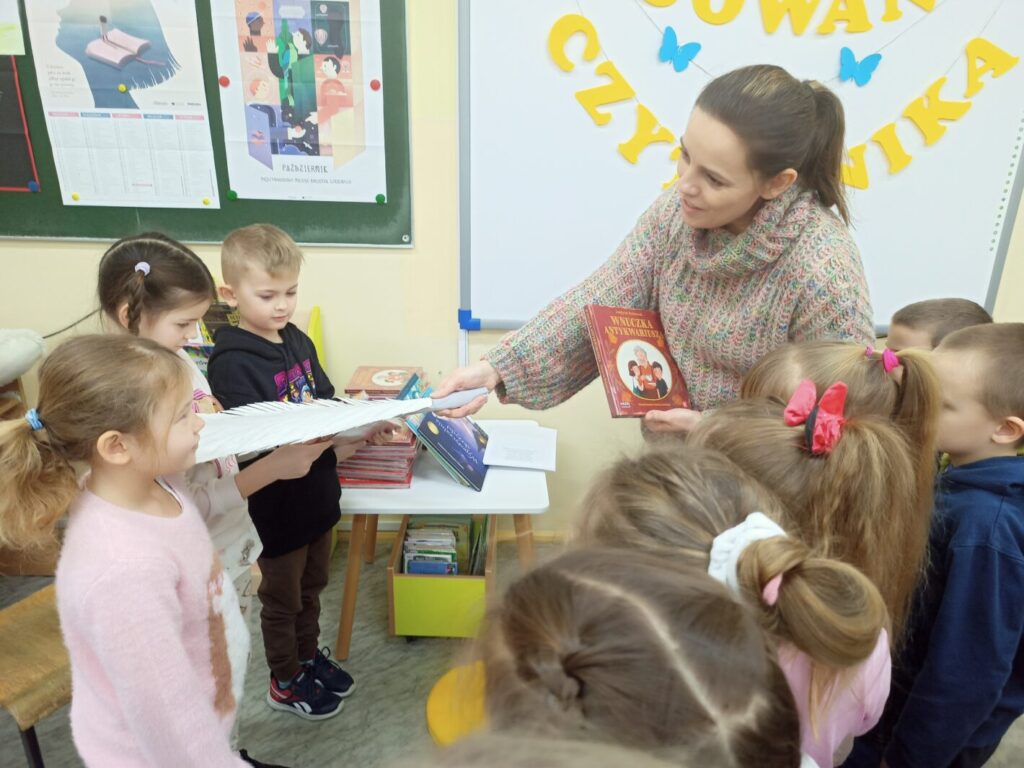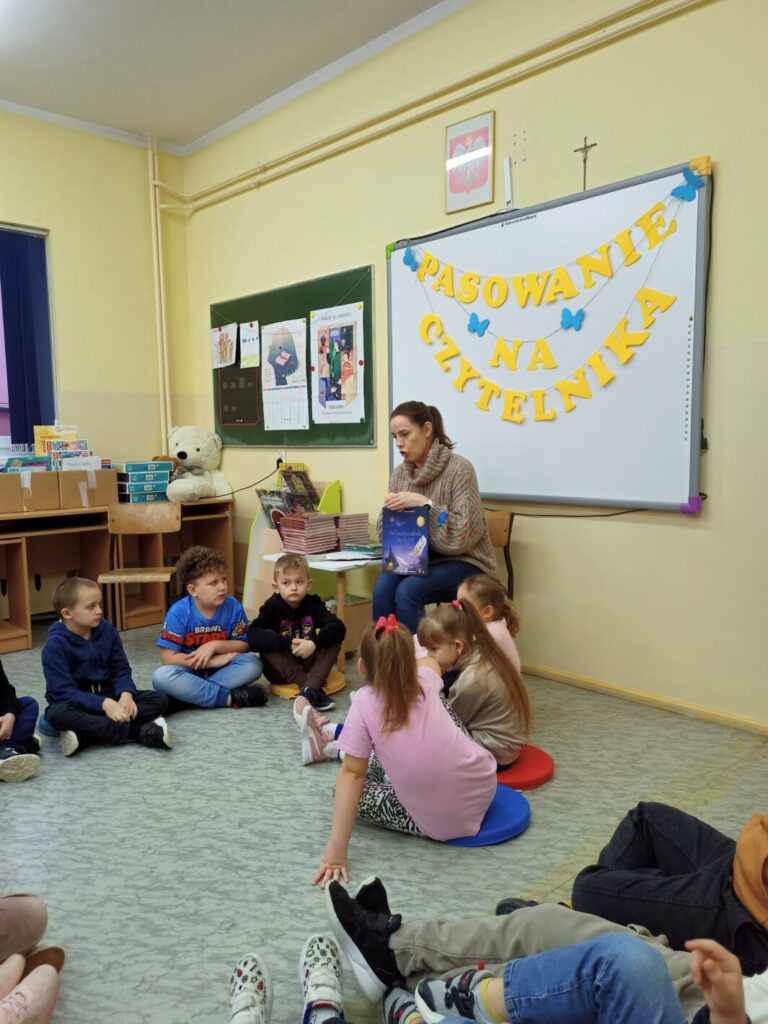 Na koniec spotkania uczniowie złożyli ślubowanie, tym samym dołączając do grona czytelników biblioteki szkolnej. Na pamiątkę świeżo upieczeni czytelnicy otrzymali przekazane przez Instytut Książki, w ramach ogólnopolskiego programu Mała Książka – Wielki Człowiek, książki “Wnuczka antykwariusza”, do których dołączony został poradnik dla rodziców, dotyczący niezwykłej wagi czytania (nie tylko samodzielnego, ale też wspólnie z rodzicami, dziadkami, starszym rodzeństwem…).
