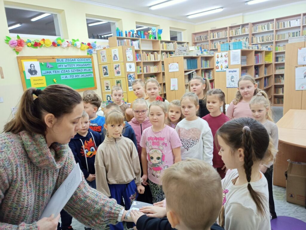 We wtorek, 07. stycznia, uczniowie klasy pierwszej odwiedzili bibliotekę szkolną, by uroczyście dołączyć do grona czytelników. W czasie spotkania dzieci poznały regulamin biblioteki szkolnej, przypomniały sobie, jak należy obchodzić się z książkami, a także wysłuchały opowieści o magicznej bibliotece i bibliotekarce z książki “Wypożyczalnia skrzydeł”.