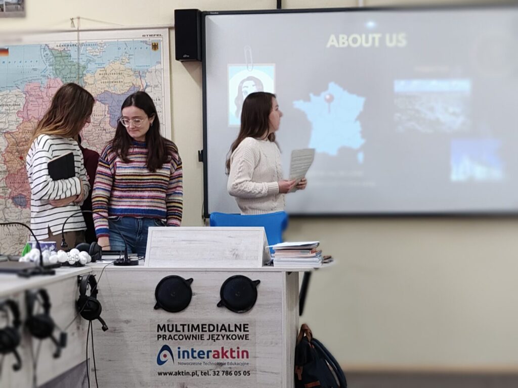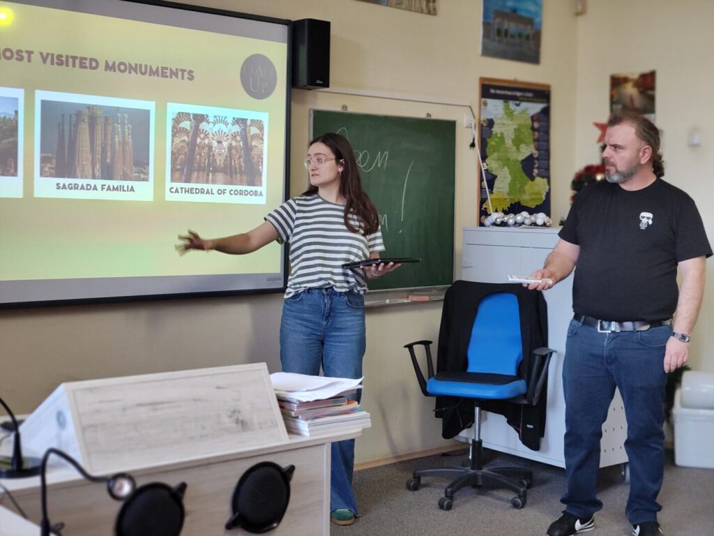 Międzynarodowe spotkanie w Szkole Podstawowej im. Stanisława Jachowicza We wtorek, 28 stycznia, w Szkole Podstawowej im. Stanisława Jachowicza odbyły się wyjątkowe zajęcia. Uczniowie klas 4 – 8 mieli okazję spotkać się z gośćmi z zagranicy – trzema dziewczynami z Hiszpanii oraz jedną z Francji. Podczas spotkania goście opowiadali o swoich krajach, dzieląc się ciekawostkami na temat kultury, tradycji i codziennego życia w Hiszpanii i Francji. Zajęcia były prowadzone w języku angielskim, co pozwoliło uczniom nie tylko poszerzyć wiedzę o innych krajach, ale także doskonalić umiejętności językowe w praktyce. Na zakończenie zajęć odbył się quiz wiedzy w aplikacji Kahoot. Uczniowie mogli sprawdzić, ile zapamiętali informacji z lekcji, a rywalizacja dostarczyła im wiele emocji i dobrej zabawy. Spotkanie było inspirującym doświadczeniem, które pokazało, jak ważna jest znajomość języków obcych oraz otwartość na inne kultury.