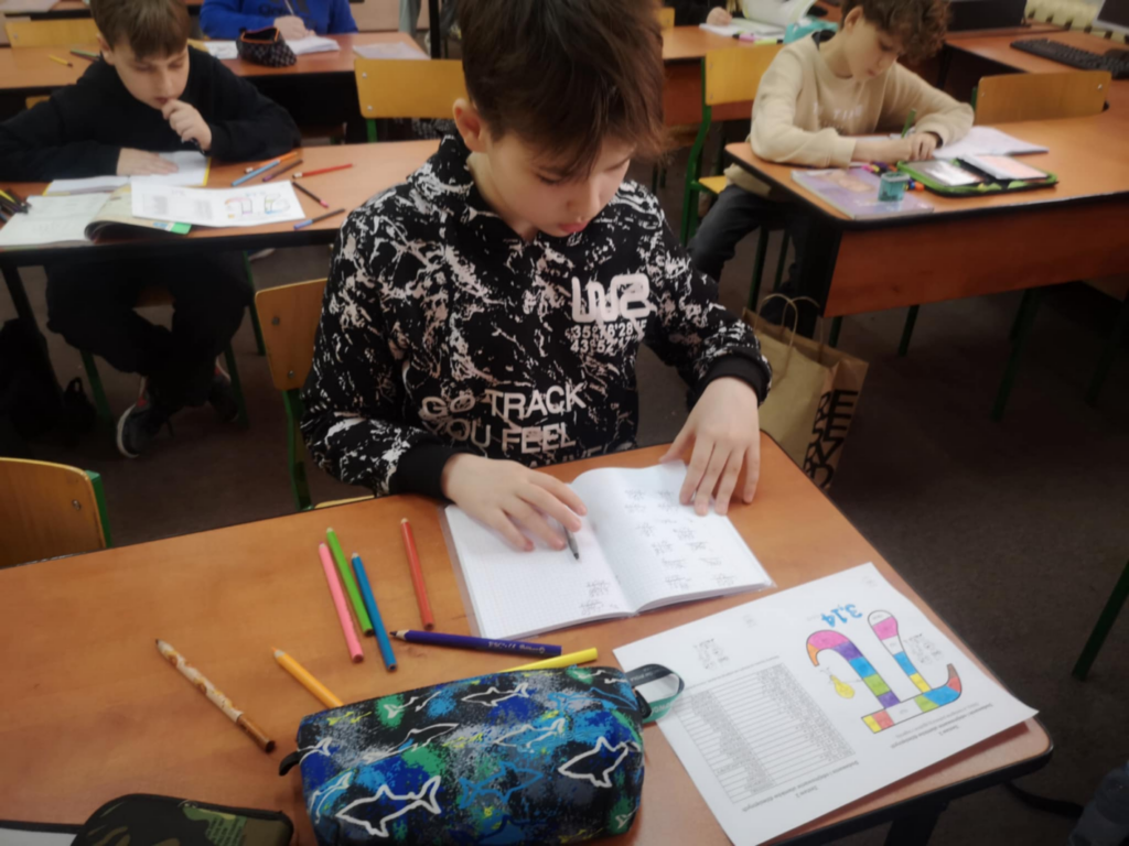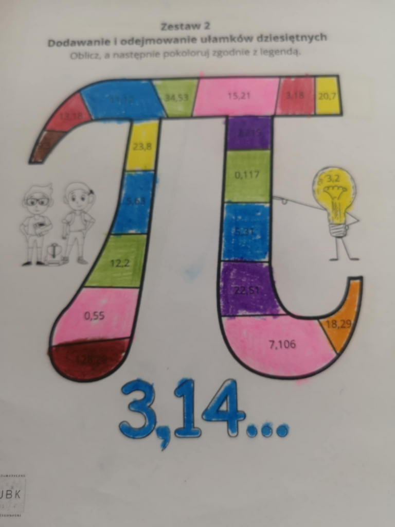 Uczniowie klas w kreatywny i zabawny sposób świętowali Międzynarodowy Dzień Matematyki. W ramach zajęć rozwiązywali zadania matematyczne związane z liczbą Pi. Następnie kolorowali rysunek symbolizujący liczbę Pi zgodnie z wynikami obliczeń. Dzięki takiej formie nauki matematyki stała się nie tylko wyzwaniem, ale także świetną zabawą 🙂