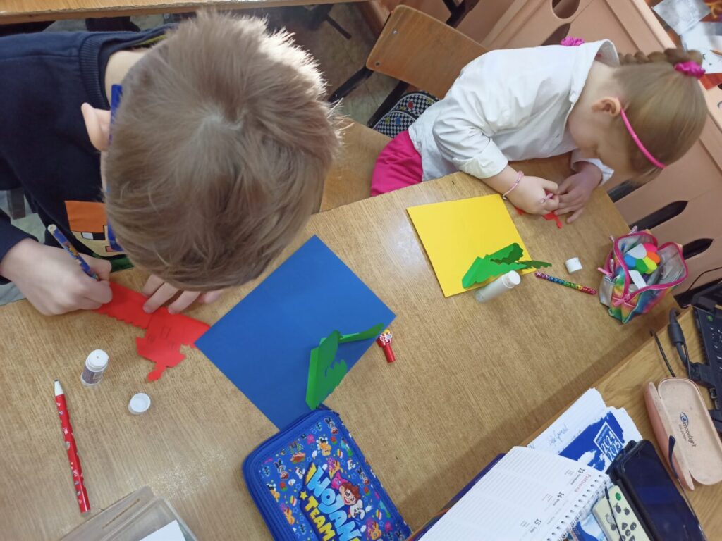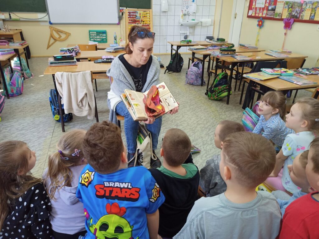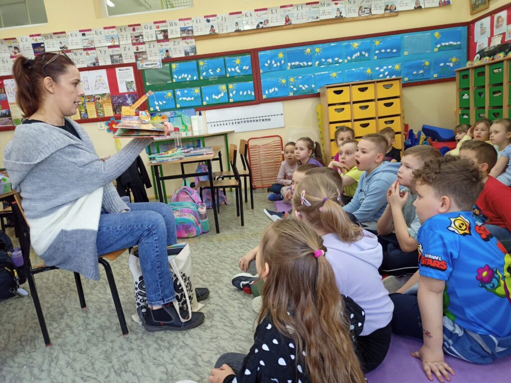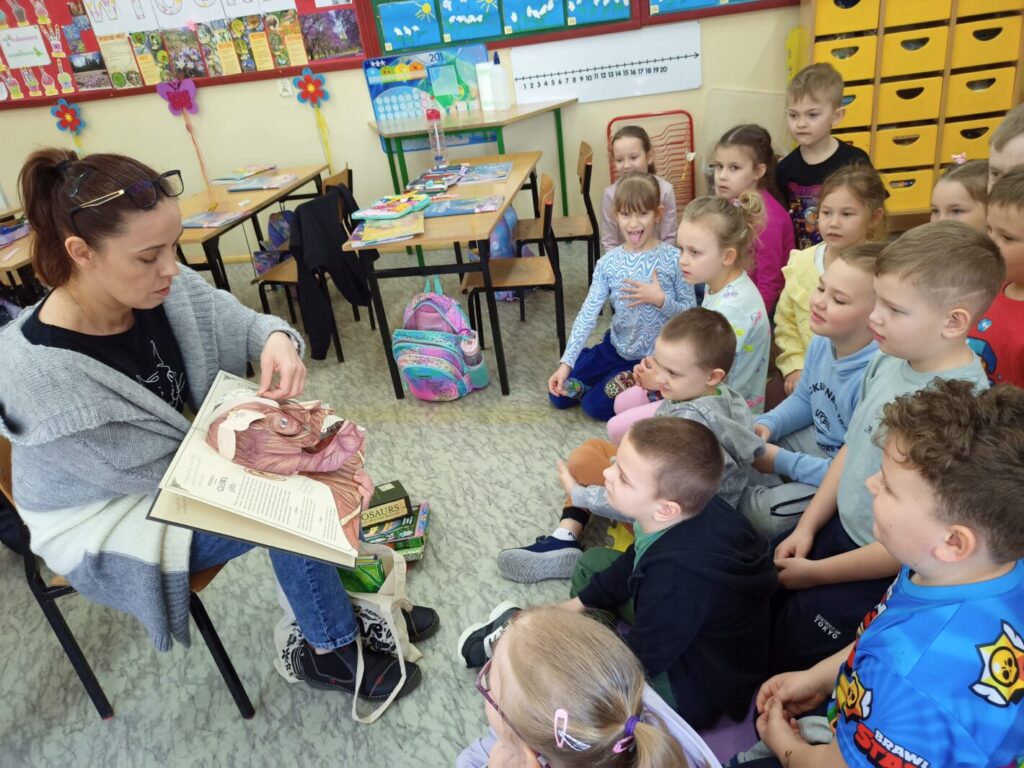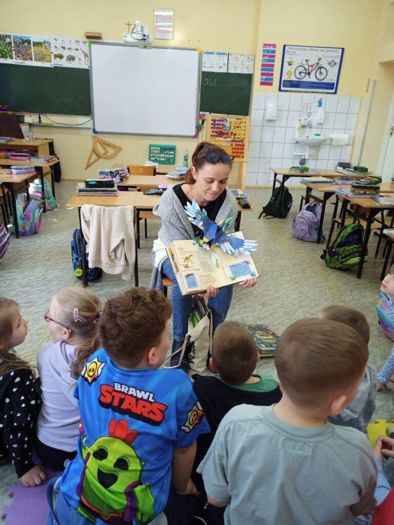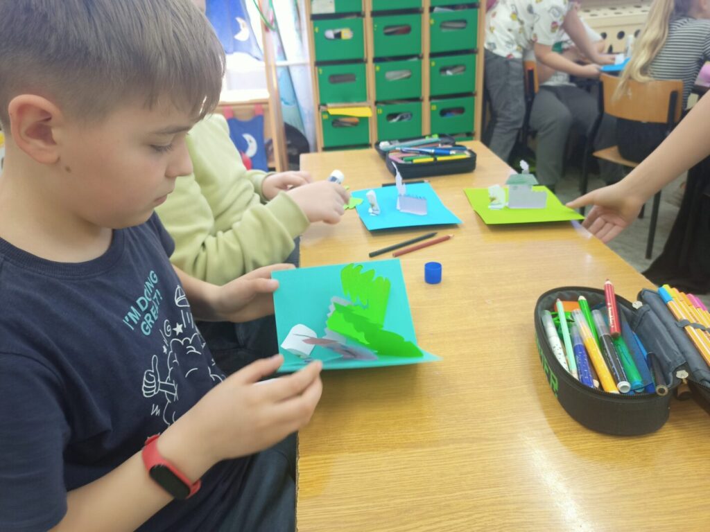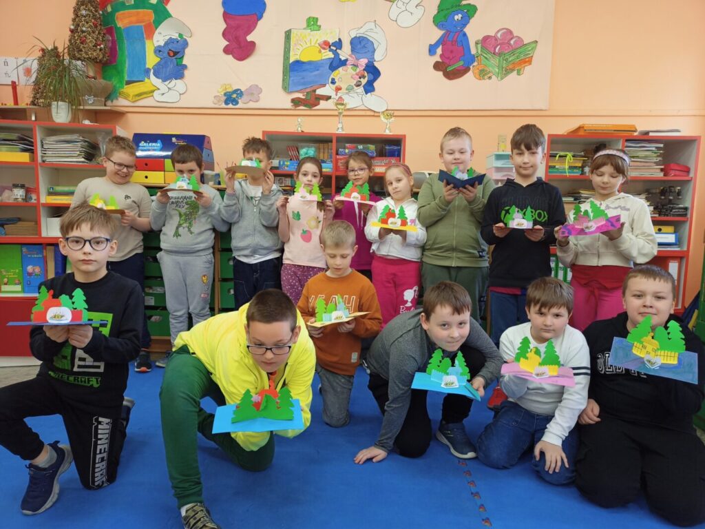 Z okazji Międzynarodowego Dnia Książki dla Dzieci w klasach I-III odbyły się zajęcia biblioteczne, podczas których uczniowie dowiedzieli się, dlaczego to święto obchodzone jest 02. kwietnia. Wspólnie przypomnieliśmy sobie, kim był Hans Christian Andersen oraz tytuły jego najpopularniejszych baśni. Opowiedzieliśmy sobie jedną z nich – Brzydkie kaczątko, a następnie uczniowie wykonali kartkę typu pop-up, stanowiącą ilustrację do tejże baśni. Zanim jednak młodzi ludzie przystąpili do pracy, poznali ideę książek pop-up oraz obejrzeli kilka egzemplarzy wykonanych tą techniką – od książek dla najmłodszych czytelników po publikację popularnonaukową – atlas anatomii człowieka. Książki, z których ilustracje “wychodzą” ze środka, tworząc obraz 3D zrobiły na dzieciach duże wrażenie, dlatego też chętnie przystąpiły do wykonania własnych kartek z takimi właśnie ilustracjami. Choć praca nie należała do najłatwiejszych, to efekt końcowy wynagrodził dzieciom podjęty trud.
