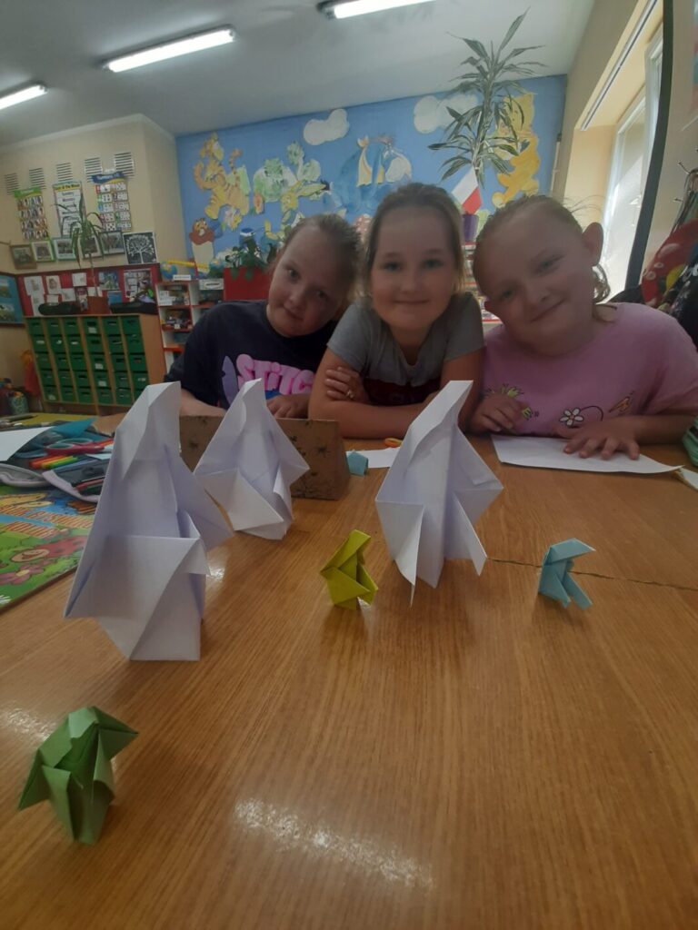 Podczas zajęć projektowych rozwijających małą motorykę 1.2-3 i 1.2-4 uczniowie poznali wiele różnych modeli origami, nauczyli się podstawowych form oraz czytania diagramów i schematów.