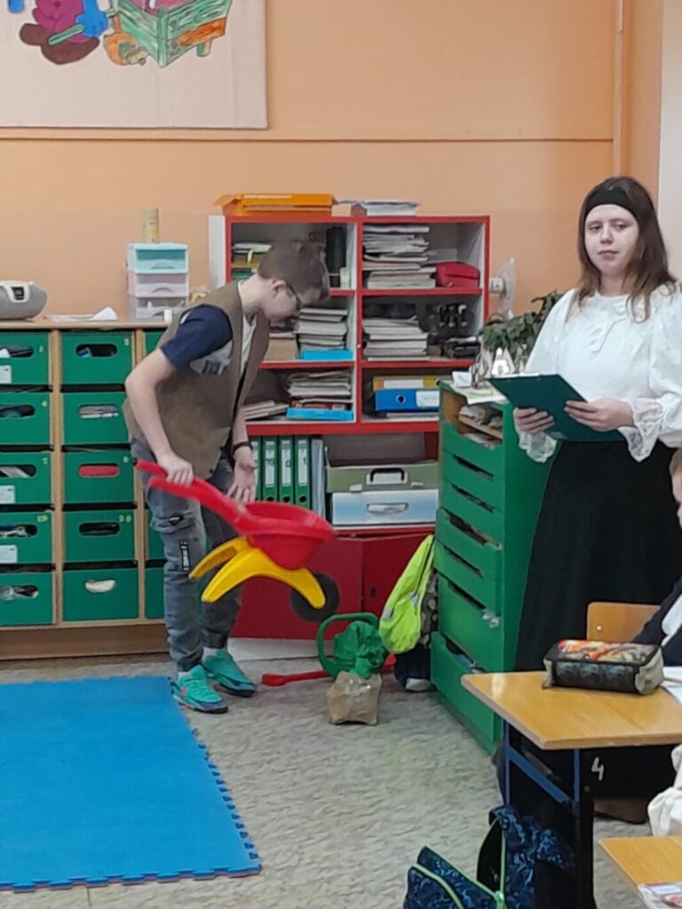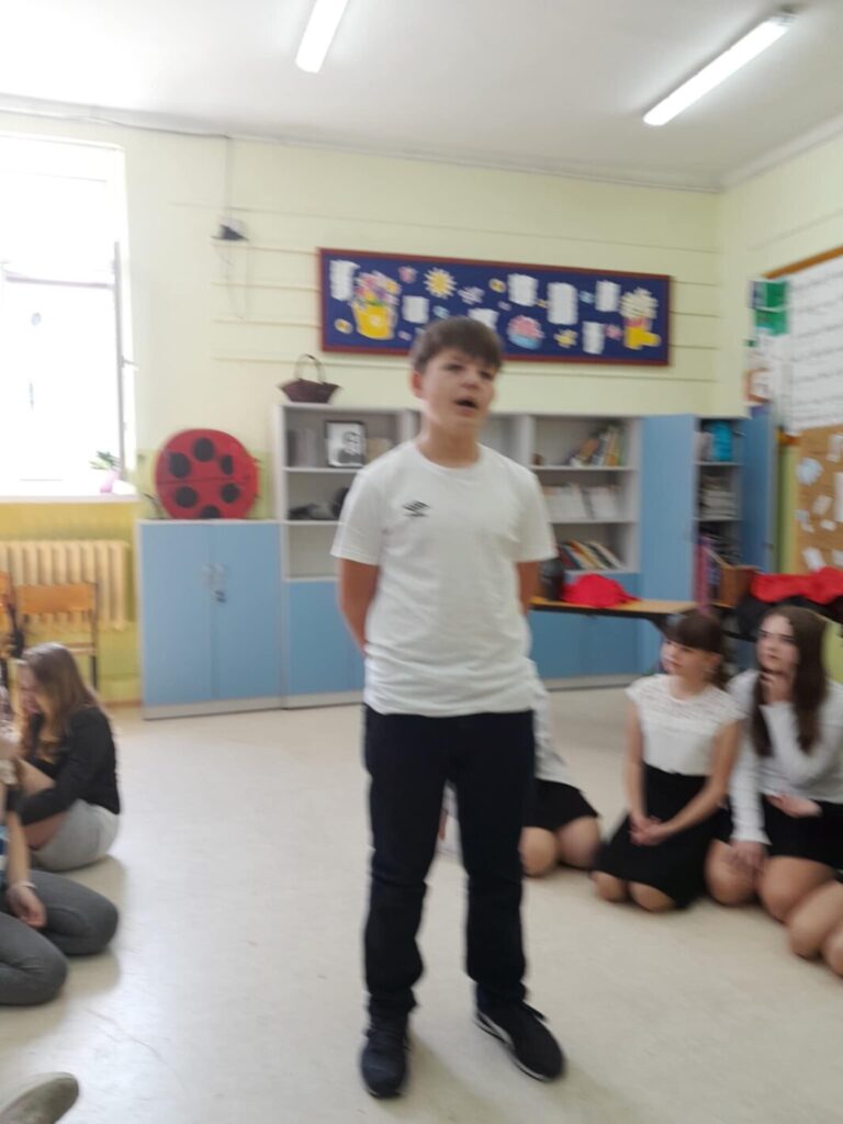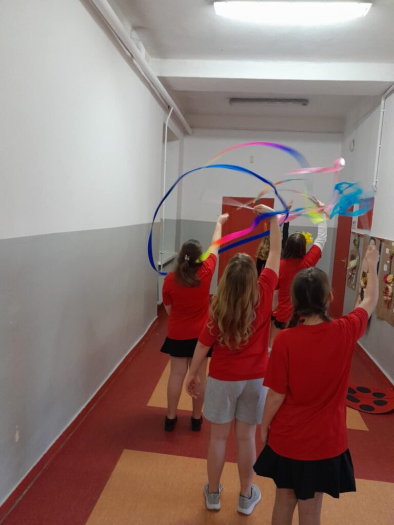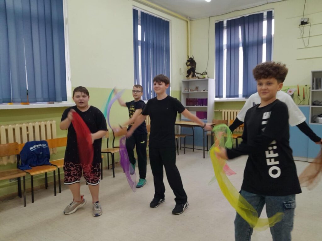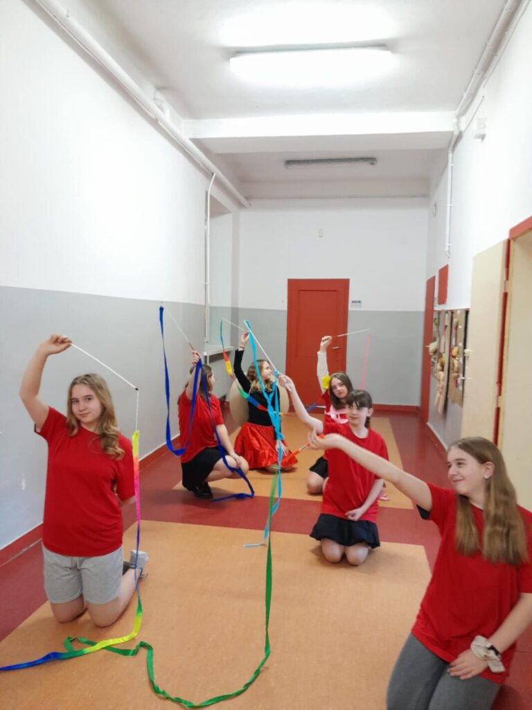Koło teatralne to wyjątkowe miejsce, w którym uczniowie mogą rozwijać swoje pasje, odkrywać talenty sceniczne oraz zdobywać pewność siebie poprzez aktywność artystyczną. Podczas spotkań w ramach zajęć projektowych 2.3–1 i 2.3-2 uczniowie rozwijali swoje umiejętności aktorskie: kreatywność, wyrażanie emocji oraz świadomego korzystania z głosu, ruchu i gestu. Na zajęciach z improwizacji budowali dialogi, tworzyli sytuacje sceniczne bez scenariusza. Szybko okazało się, że improwizacja to nie tylko dobra zabawa, ale też doskonałe ćwiczenie na uważność, odwagę i otwartość. Nie zabrakło również ćwiczeń na emisję głosu i dykcję, które pozwoliły każdemu aktorowi odkryć pełnię możliwości swojego głosu. Praca nad mimiką i gestykulacją uwolniła ekspresję ciała, a warsztaty pantomimy pokazały, że można opowiadać historie i wzbudzać emocje… bez użycia ani jednego słowa! Ważną częścią zajęć była również analiza krótkiego tekstu literackiego i próby jego interpretacji. To właśnie tutaj uczniowie ćwiczyli umiejętność czytania „między wierszami” i wydobywania z tekstu tego, co najistotniejsze. Towarzyszyły temu rozmowy o emocjach w aktorstwie – jak je odczuwać, jak pokazywać, jak nimi grać. Jednym z najbardziej kreatywnych momentów zajęć było tworzenie własnych, krótkich scenariuszy, które potem posłużyły jako baza do tworzenia scenek teatralnych. Praca w parach i grupach sprzyjała rozwijaniu umiejętności współpracy, a także synchronizacji ruchów i wspólnego tworzenia przekazu scenicznego. Nie obyło się bez zabaw ruchowych z chustą animacyjną i wstążką gimnastyczną, które stały się nie tylko narzędziem scenicznej ekspresji, ale i metaforą wspólnego tworzenia oraz ćwiczeń rozwijających koncentrację i pamięć – niezwykle ważnych w pracy aktora. Uczestnicy z zapałem ćwiczyli zapamiętywanie tekstu, odgrywanie dialogów oraz… improwizację na zadany temat, która często przeradzała się w prawdziwy spektakl emocji i śmiechu. Ogromne emocje wzbudziły ćwiczenia na wyrażanie uczuć, w których uczestnicy, często po raz pierwszy, musieli nazwać i zagrać takie stany jak złość, radość, strach czy smutek. To nie tylko warsztat teatralny, ale również cenne doświadczenie emocjonalne.