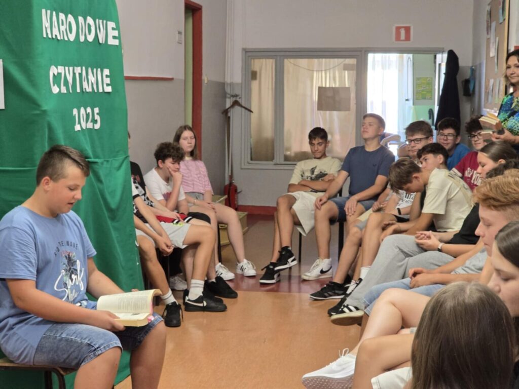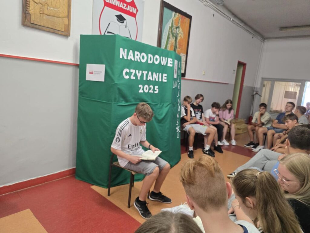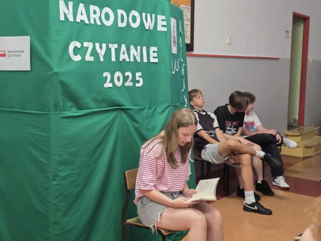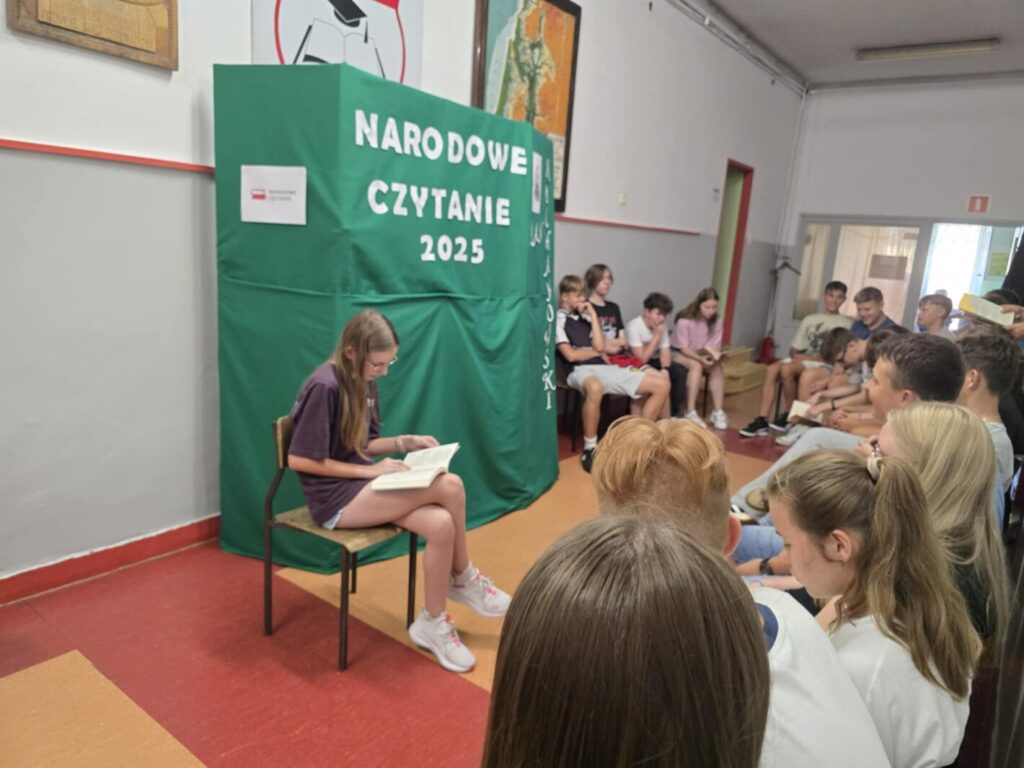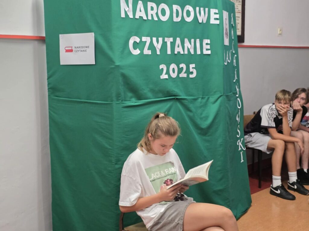 W piątek, 05. września uczniowie klas 6 i 8 wzięli udział w ogólnopolskiej akcji Narodowe Czytanie 2025, której celem jest nie tylko promocja czytelnictwa, ale też – upamiętnianie wybitnej polskiej literatury.