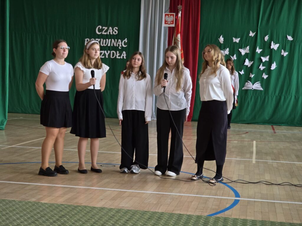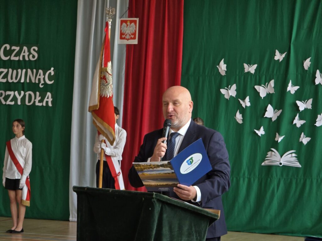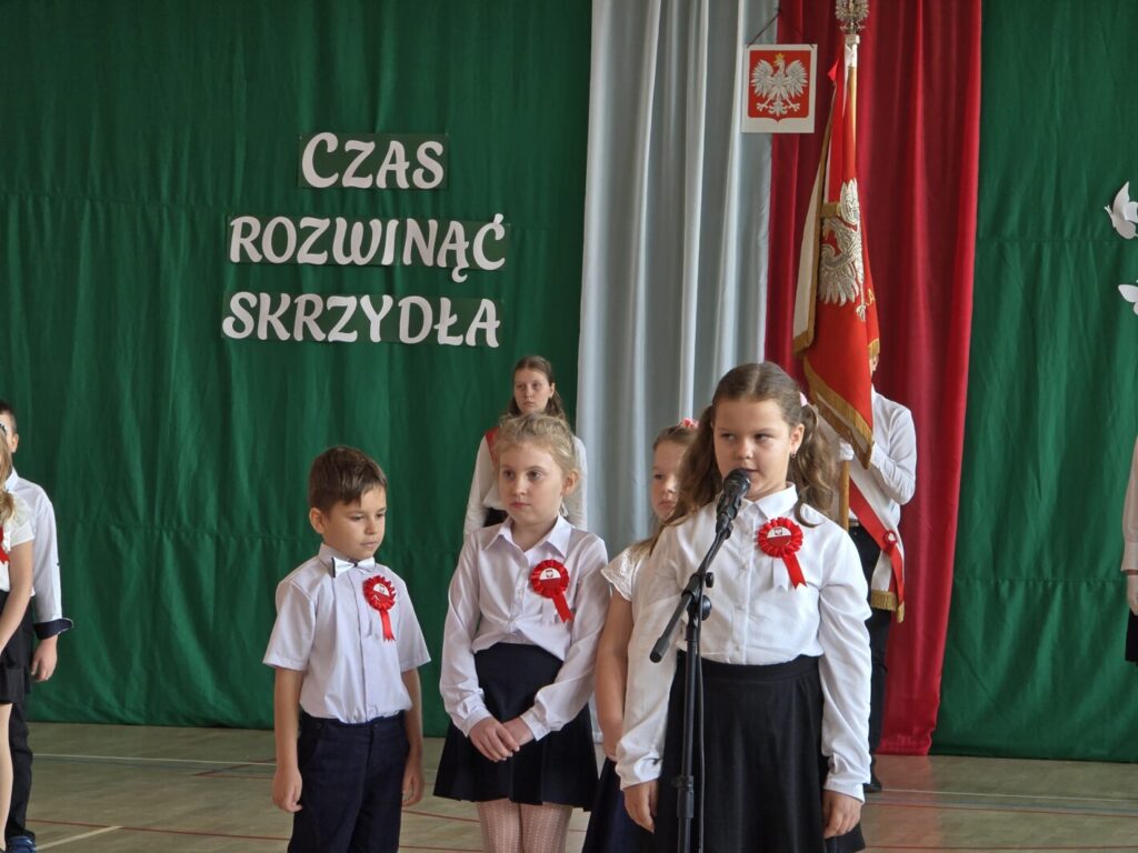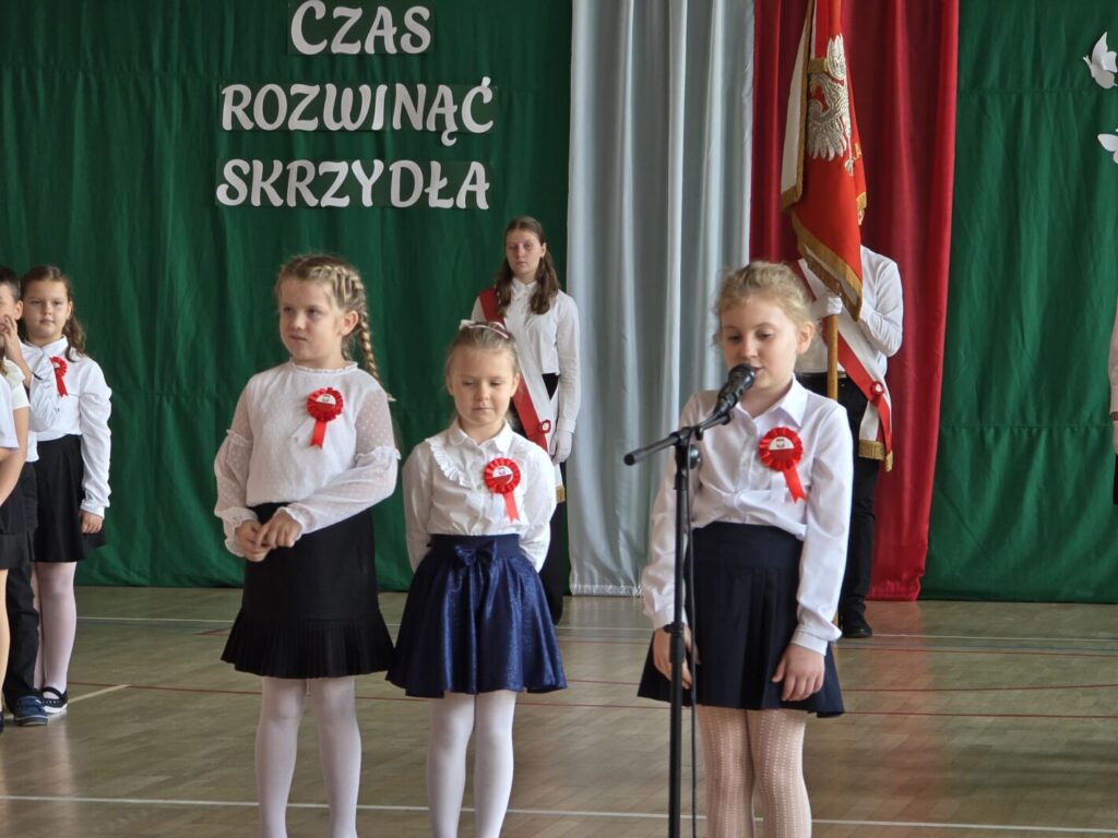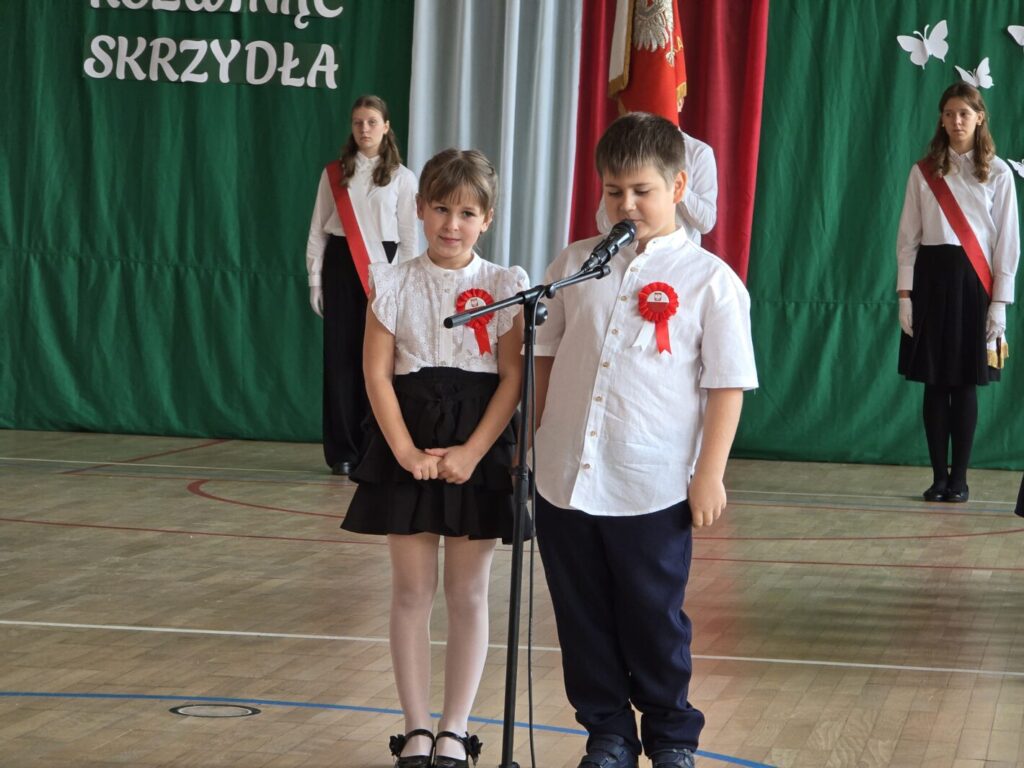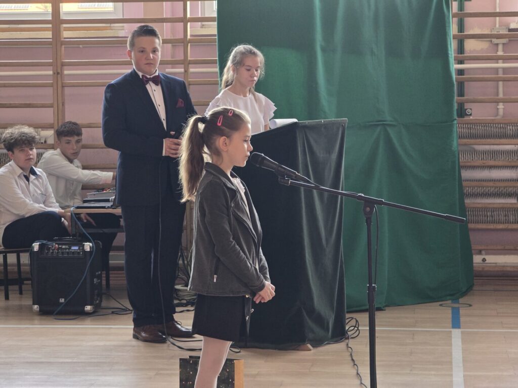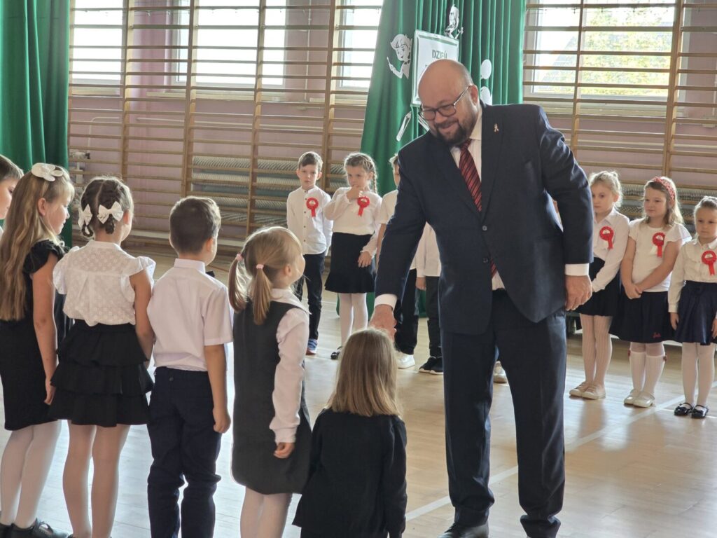 Nie był to jednak jedyny powód do świętowania, bowiem tradycją naszej placówki jest, że w tym dniu uczniowie klasy pierwszej zostają oficjalnie przyjęci do społeczności szkolnej poprzez pasowanie na ucznia. Podczas uroczystości pierwszoklasiści po raz pierwszy wystąpili przed starszymi koleżankami i kolegami, gronem pedagogicznym, zaproszonymi gośćmi oraz rodzicami i świetnie poradzili sobie z tym wyzwaniem. Nie zabrakło wspólnych piosenek i wierszy, a przede wszystkim uroczyście złożonego ślubowania, a na koniec – pamiątkowych prezentów.