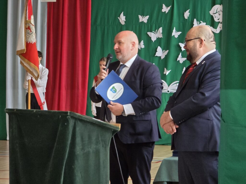 Podczas uroczystości dyrektor szkoły wręczył również uczniom Stypendia z Fundacji Świętego Mikołaja, na które środki zgromadzone zostały między innymi dzięki wpłatom na subkonto Fundacji dokonanym przez rodziców i sponsorów, przekazane 1,5% odpisu od podatku oraz zbiórce w trakcie Pikniku Rodzinnego.