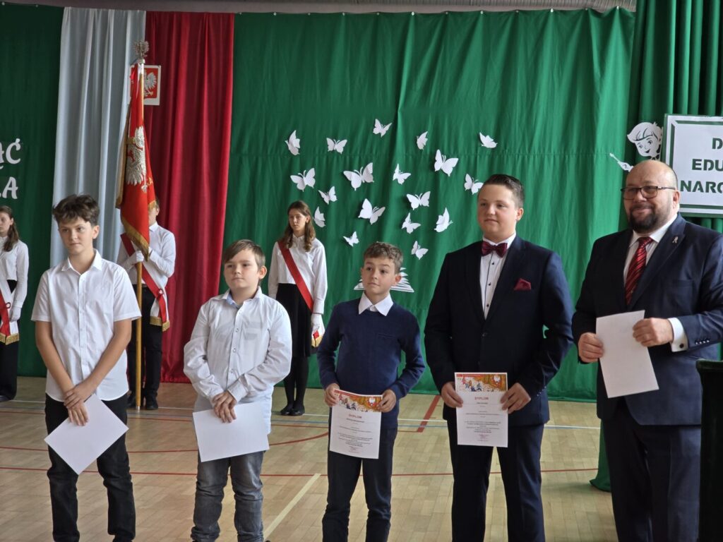 14. października, w rocznicę powołania Komisji Edukacji Narodowej (1773 r.) obchodzony jest Dzień Edukacji Narodowej, czyli święto wszystkich pracowników oświaty. Z tej okazji w poniedziałek 13. października w naszej szkole odbył się uroczysty apel, w czasie którego cała społeczność celebrowała tzw. “Dzień Nauczyciela”. W czasie uroczystości dyrektor szkoły, pan Tomasz Wojtkiewicz, przyznał Nagrodę Dyrektora nauczycielom za osiągnięcia w pracy dydaktycznej, wychowawczej i opiekuńczej. Otrzymali ją: