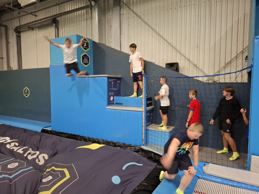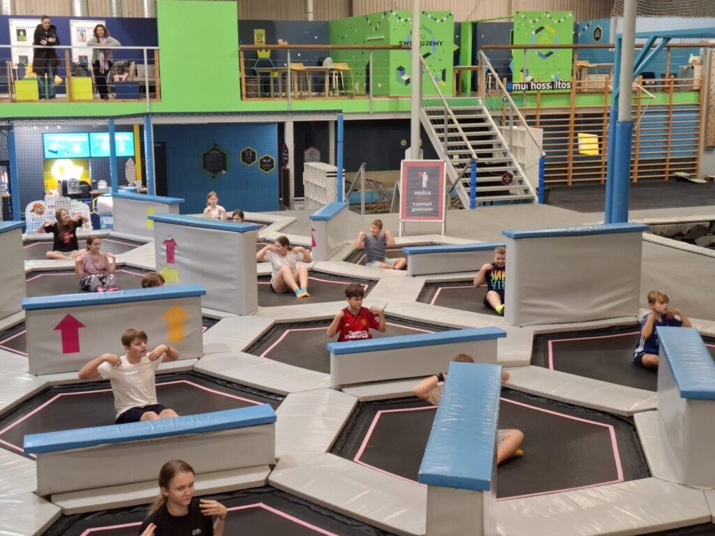 Dzieci z klasy 4 i 7 z radością korzystały z atrakcji, ćwicząc skoki, salta pod okiem trenerów i spalając mnóstwo kalorii. Był to doskonały sposób na rozładowanie energii, poprawę kondycji i wspólną, beztroską zabawę. Zastrzyk endorfin i uśmiechy nie schodziły z twarzy uczestników.