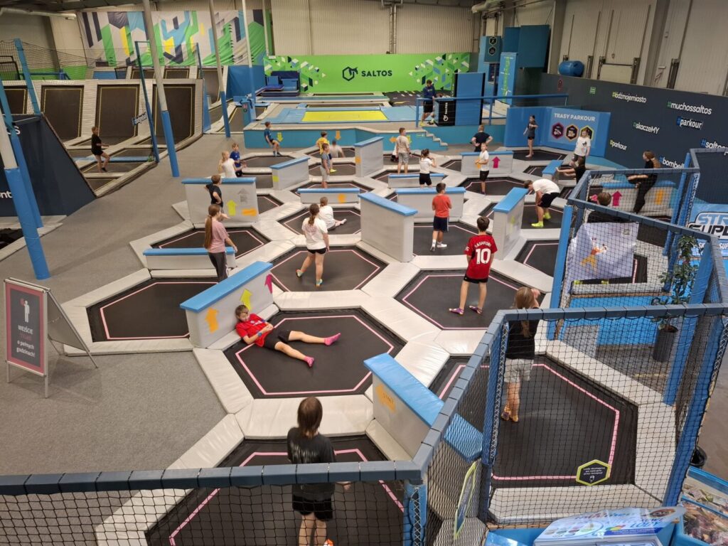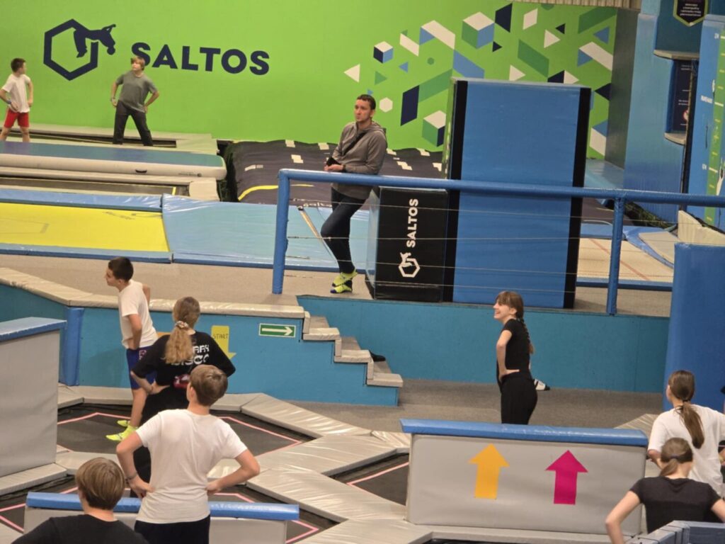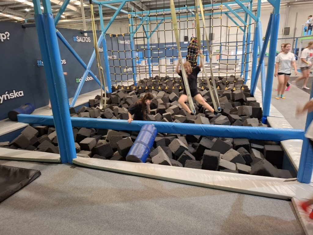 Park Trampolin “SALTOS” w Łodzi okazał się strzałem w dziesiątkę. Uczniowie mieli do dyspozycji ogromną halę wypełnioną różnorodnymi trampolinami – kwadratowymi do zbijaka, prostokątnymi do akrobacji, a także strefami parkour, trampolinami z koszami i basenami z gąbkami.