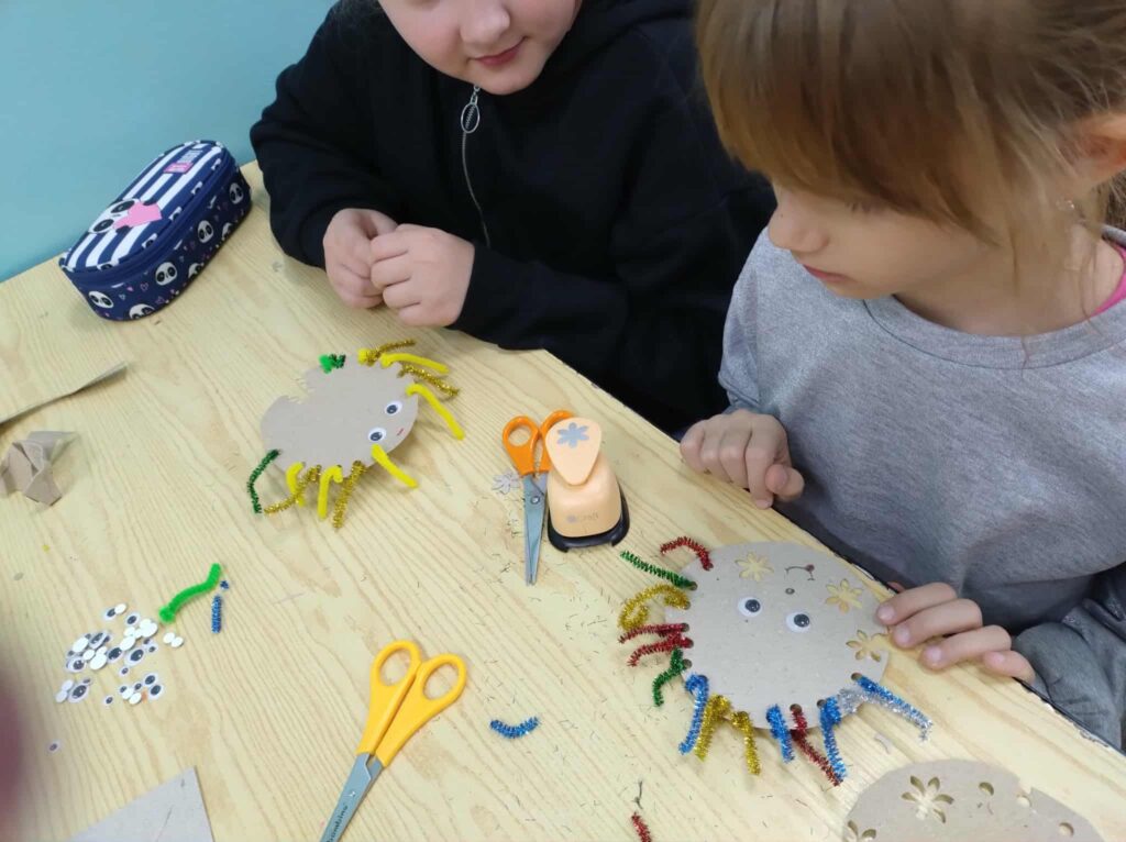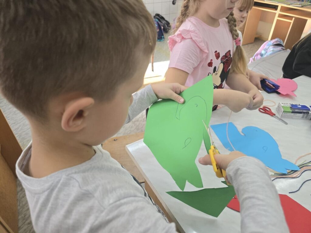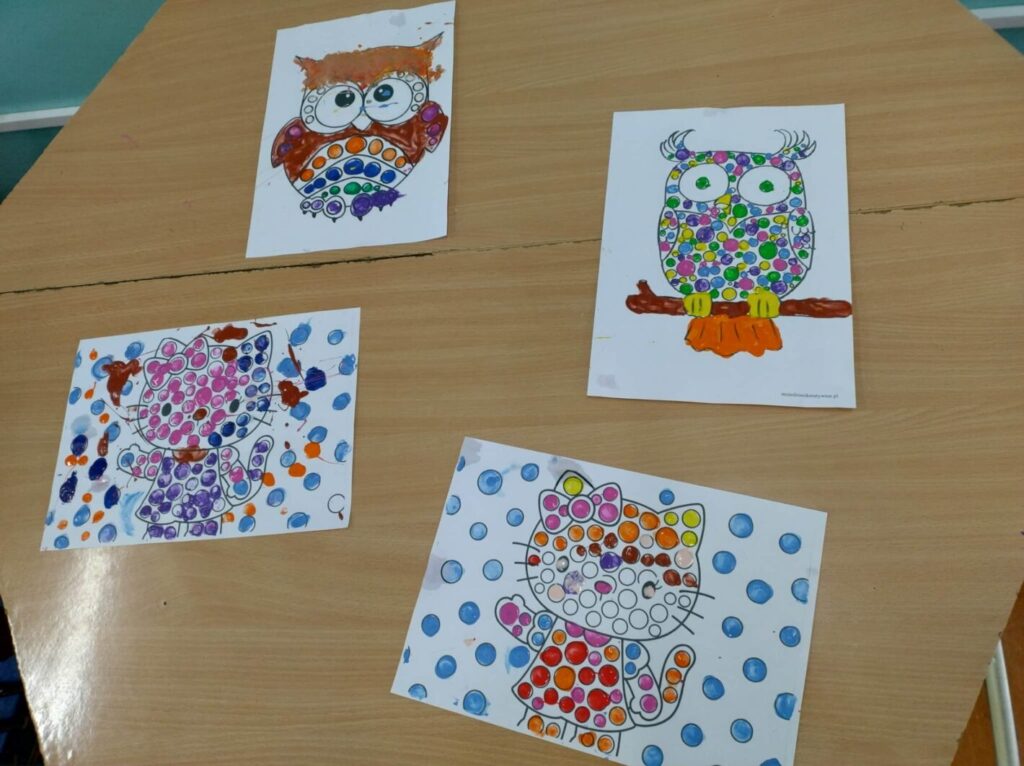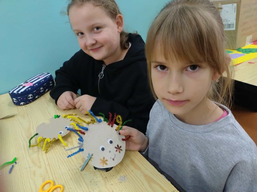 I właśnie dlatego w ramach zajęć projektowych 1.2-7 i 1.2-8 uczniowie doskonalą te umiejętności poprzez zabawę i działania artystyczne. Tworząc ciekawe i oryginalne prace dobrze się bawią, a jednocześnie trenują sprawność swoich rąk.