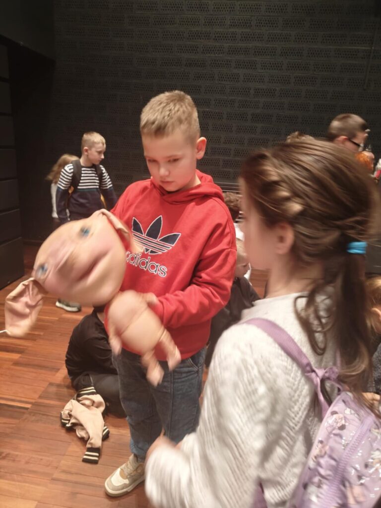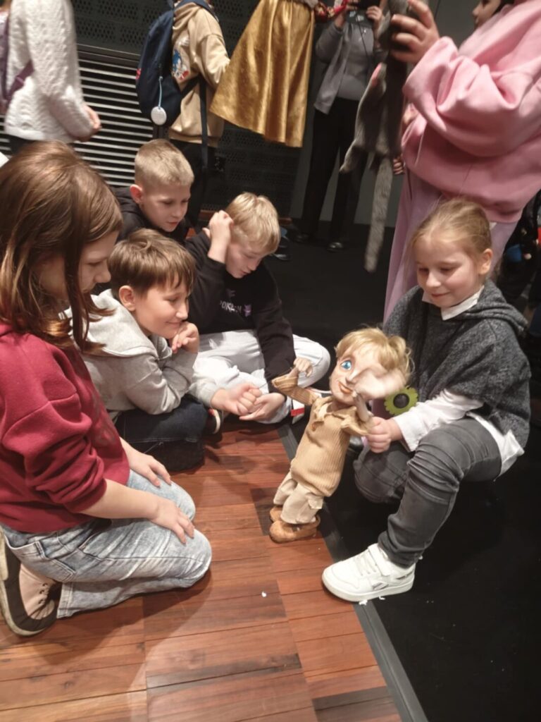 W ramach realizacji zajęć projektowych w dniu 11.12.2025 r. uczniowie z klas 1-3 pod opieką wychowawców wybrali się na wycieczkę do Teatru Lalek “Arlekin” w Łodzi na spektakl pt. “Mała Syrenka” oraz na warsztaty teatralne. Przedstawienie oparte na baśni Hansa Christiana Andersena zachwyciło dzieci piękną muzyką, wspaniałą scenografią oraz cudowną grą aktorów. Po spektaklu w ramach warsztatów teatralnych mieliśmy możliwość zwiedzania teatru “od kuchni”. Zajrzeliśmy za scenę, aby zobaczyć skomplikowane konstrukcje umożliwiające zmianę dekoracji w trakcie i po przedstawieniu, obserwowaliśmy różnorakie możliwości oświetlenia sceny oraz efekty akustyczne. W pracowni lalkarskiej dzieci poznały podstawowe rodzaje lalek. Uczestnicy warsztatów za pomocą prostych ćwiczeń doświadczyli różnorodności i bogactwa teatru lalkowego. Wyjazd był nie tylko ciekawą formą kontaktu z teatrem, ale również wspólnym, integrującym przeżyciem dla wszystkich uczniów.