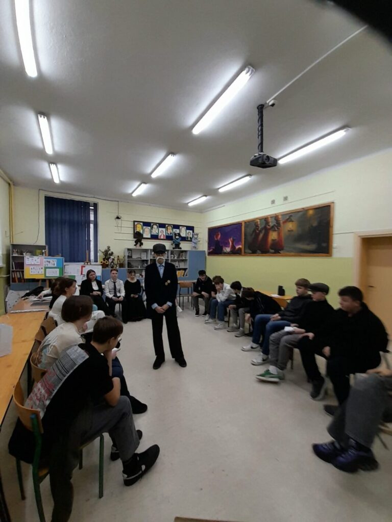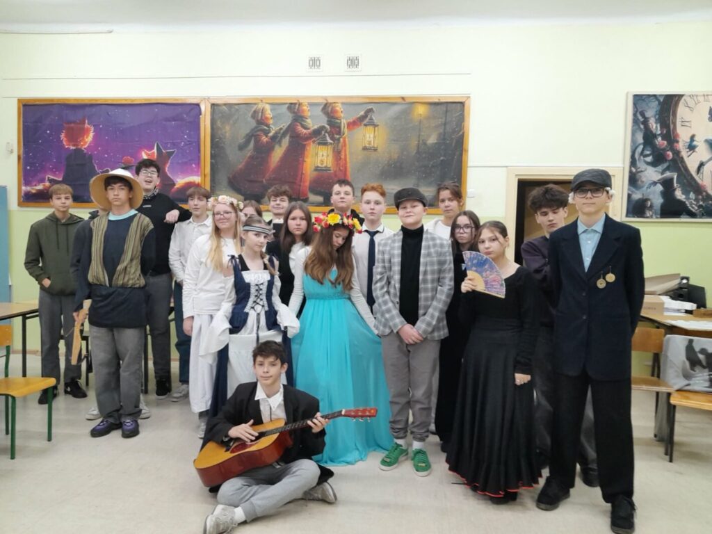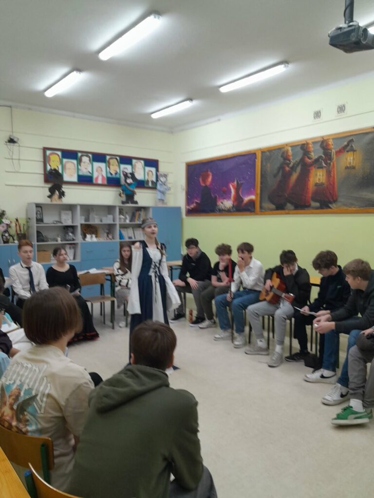 Na lekcji języka polskiego w klasie ósmej odbyły się zajęcia o wyjątkowym, teatralnym charakterze. Tego dnia sala lekcyjna zamieniła się w scenę, a uczniowie – w bohaterów lektur obowiązkowych. Wcielając się w wybrane postacie, opowiadali w pierwszej osobie o swoich losach, przeżyciach oraz kluczowych wydarzeniach z utworów literackich.