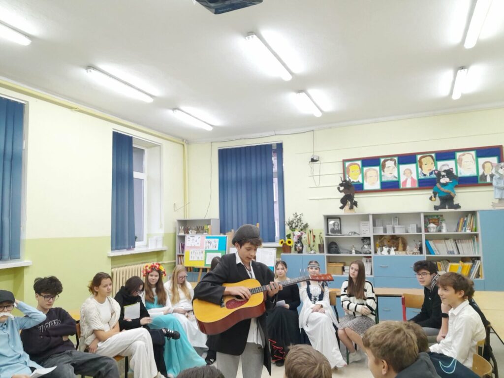 Uczniowie doskonalili wystąpienia publiczne, pracę nad słownictwem, składnią i stylem wypowiedzi. Jednocześnie lekcja sprzyjała integracji zespołu klasowego, przełamywaniu nieśmiałości i budowaniu pewności siebie. Zajęcia te udowodniły, że literatura może być żywa, ciekawa i inspirująca, a nauka – pełna kreatywności i dobrej zabawy.
