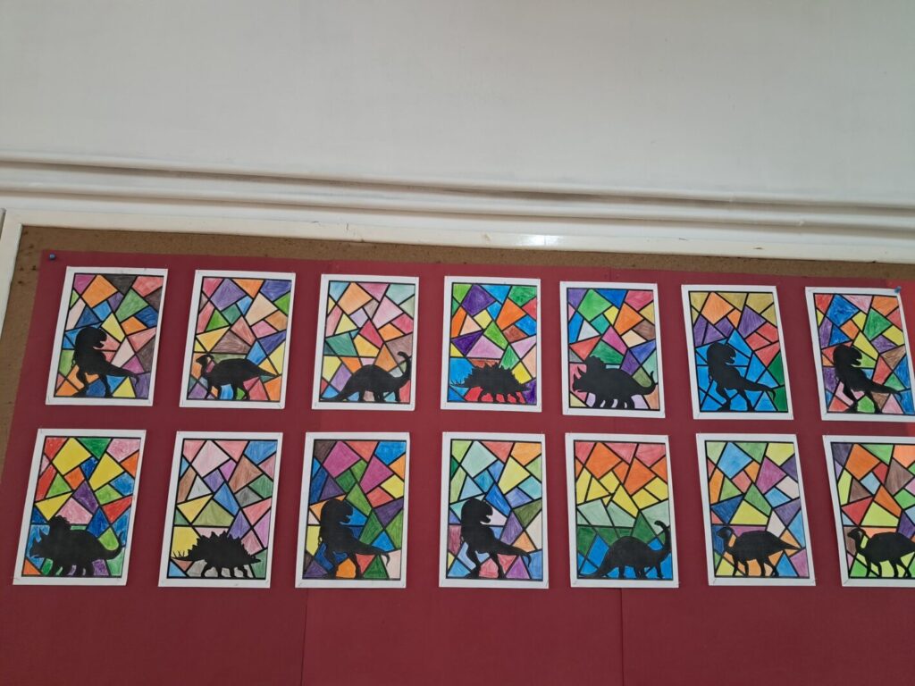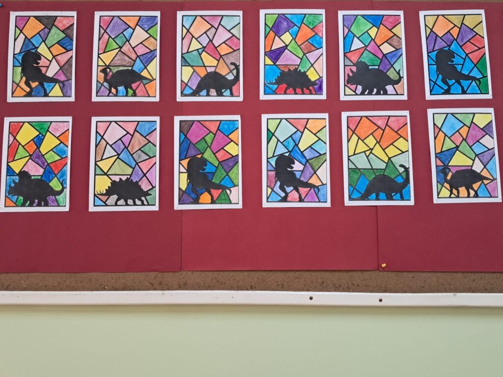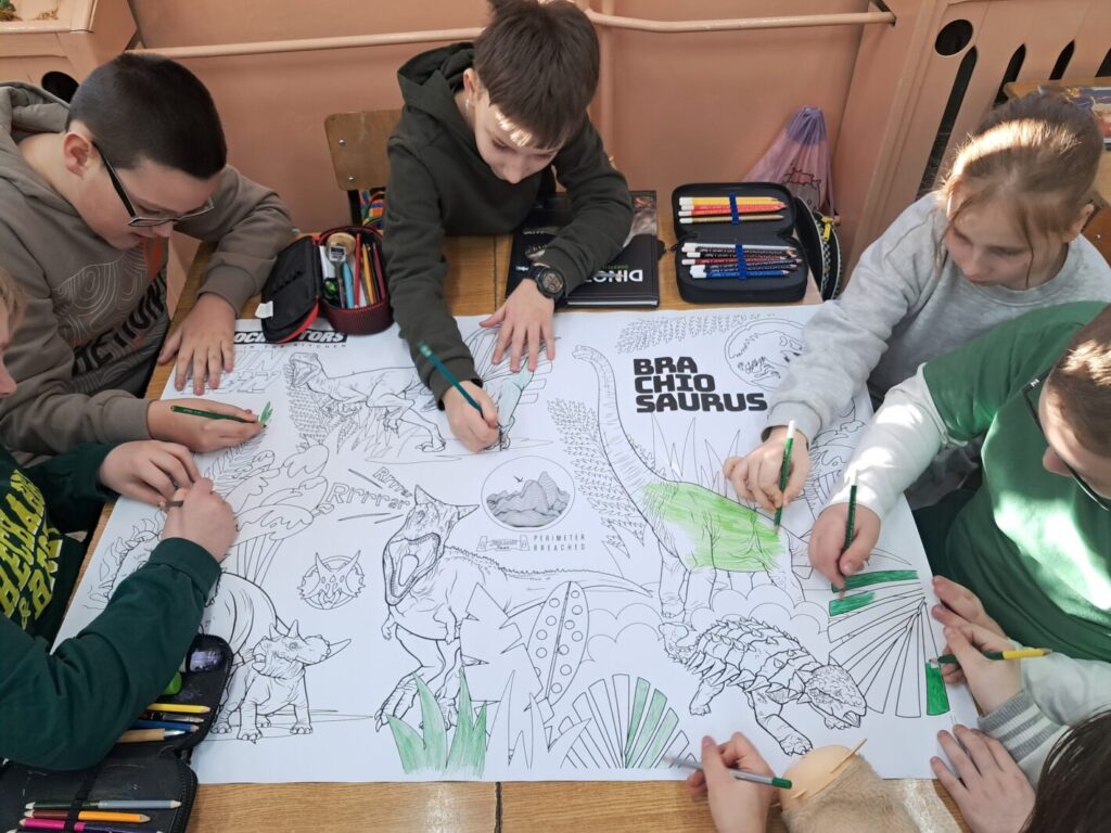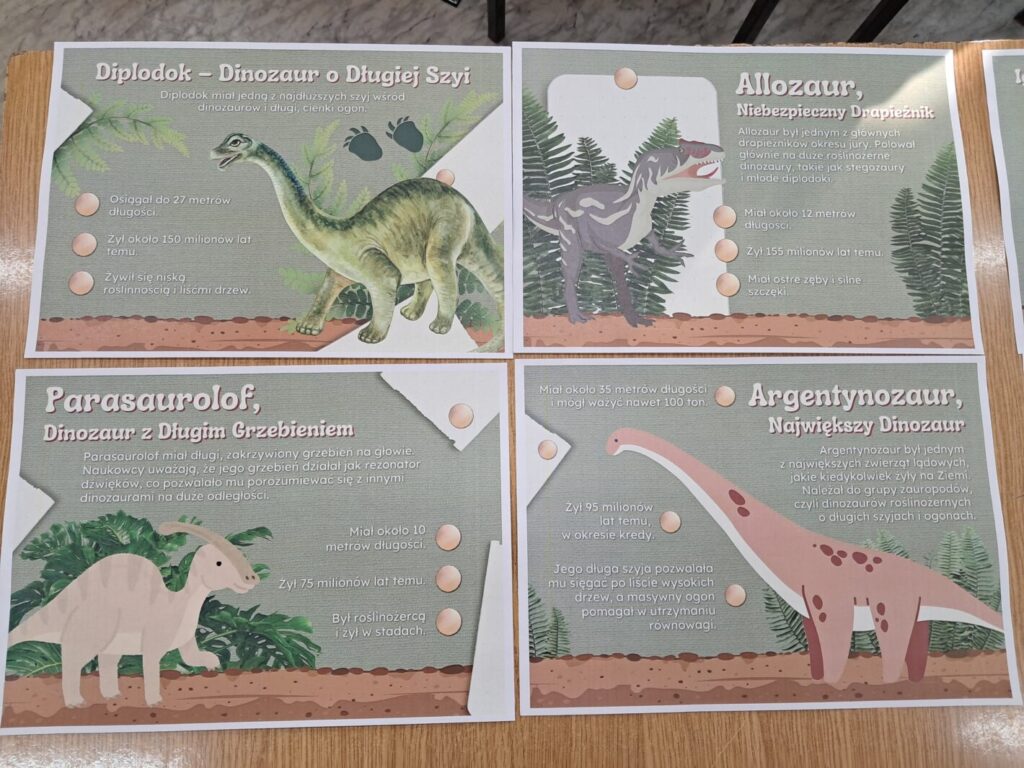 Dzisiejszy dzień (26 lutego) upłynął nam pod znakiem prehistorii! Nasza klasa wypełniła się kolorem zielonym, a korytarze opanowali fani paleontologii. Moi uczniowie udowodnili, że o dinozaurach wiedzą niemal wszystko! Podczas zajęć rozpoznawaliśmy gatunki i zgłębialiśmy fascynujące fakty o warunkach życia dinozaurów w erze mezozoicznej. Wiemy już, który był najszybszy, a który najbardziej żarłoczny! Ławki szkolne na chwilę zamieniły się w wystawę – dzieci przyniosły swoje ulubione modele oraz maskotki, które towarzyszyły im podczas zajęć. Podczas warsztatów plastycznych powstały barwne malowanki i efektowne dino-witraże, które teraz zdobią nasze korytarze. To była niesamowita lekcja historii naturalnej.