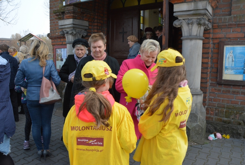 W tej radosnej manifestacji propagującej kampanię ,,Pola Nadziei” rozdawano przechodniom kwiaty żonkile – symbol nadziei i solidarności z chorymi na raka, z jednoczesną zbiórką pieniędzy do puszek, a także balony, naklejki oraz ulotki zachęcające do oddania 1% z podatku na budowę Hospicjum w Zgierzu. Stowarzyszenie Hospicjum im. Jana Pawła II w Zgierzu organizuje tę akcję na terenie Zgierza, Ozorkowa, Strykowa, Głowna, Aleksandrowa Łódzkiego i Leśmierza w różnych terminach.