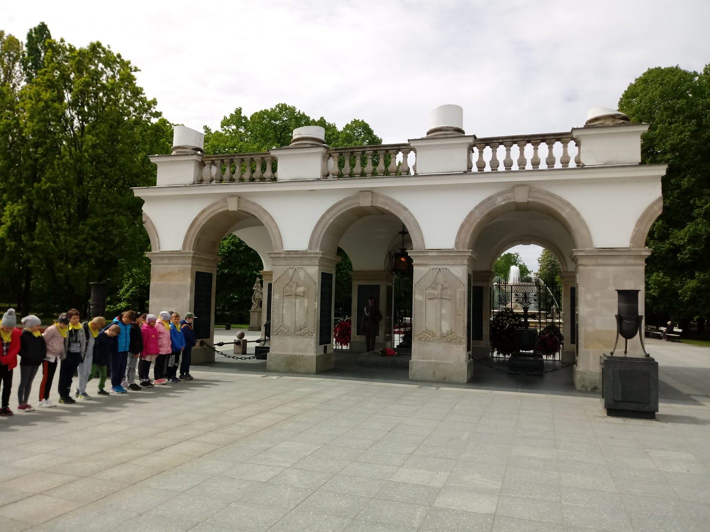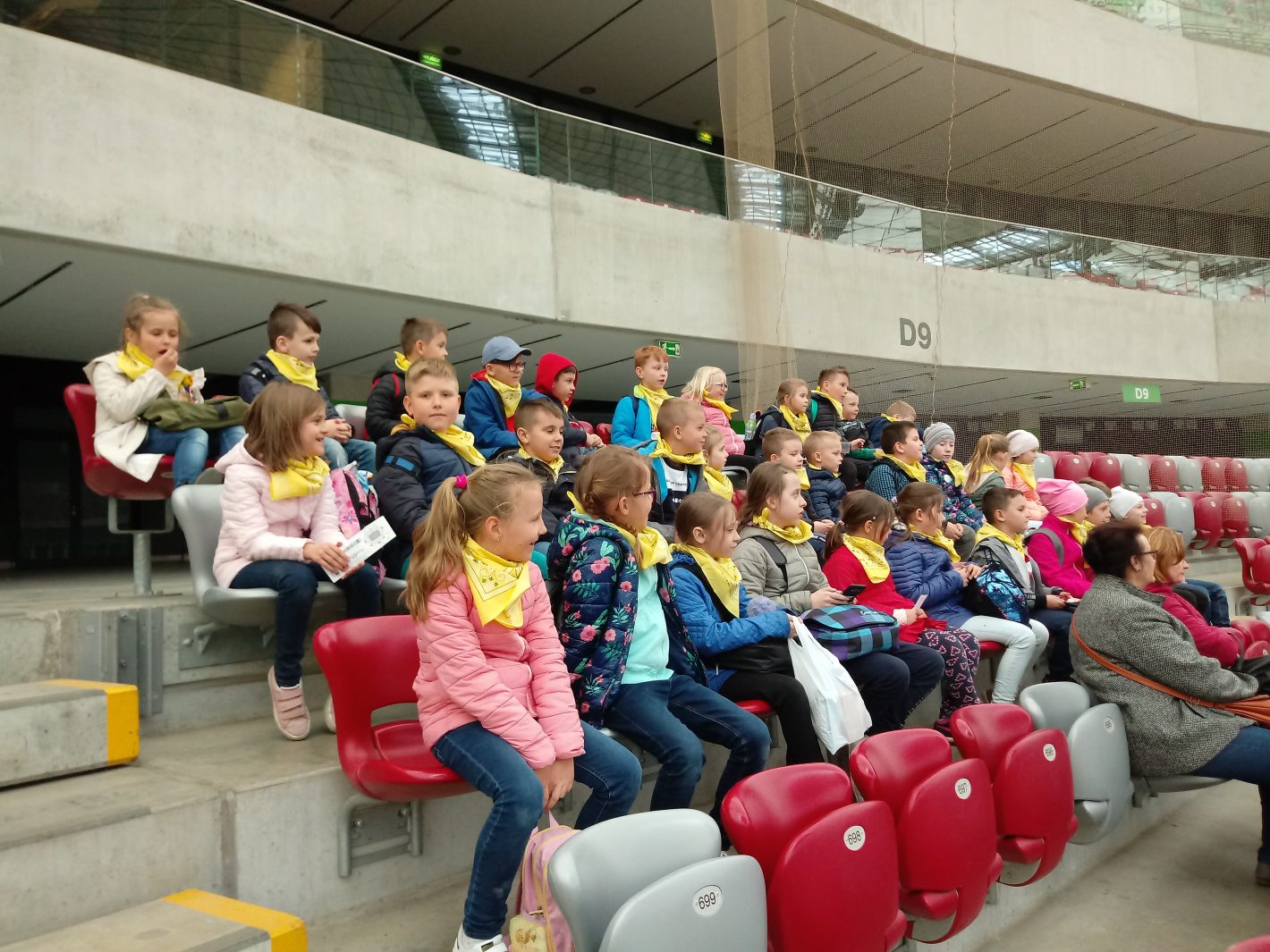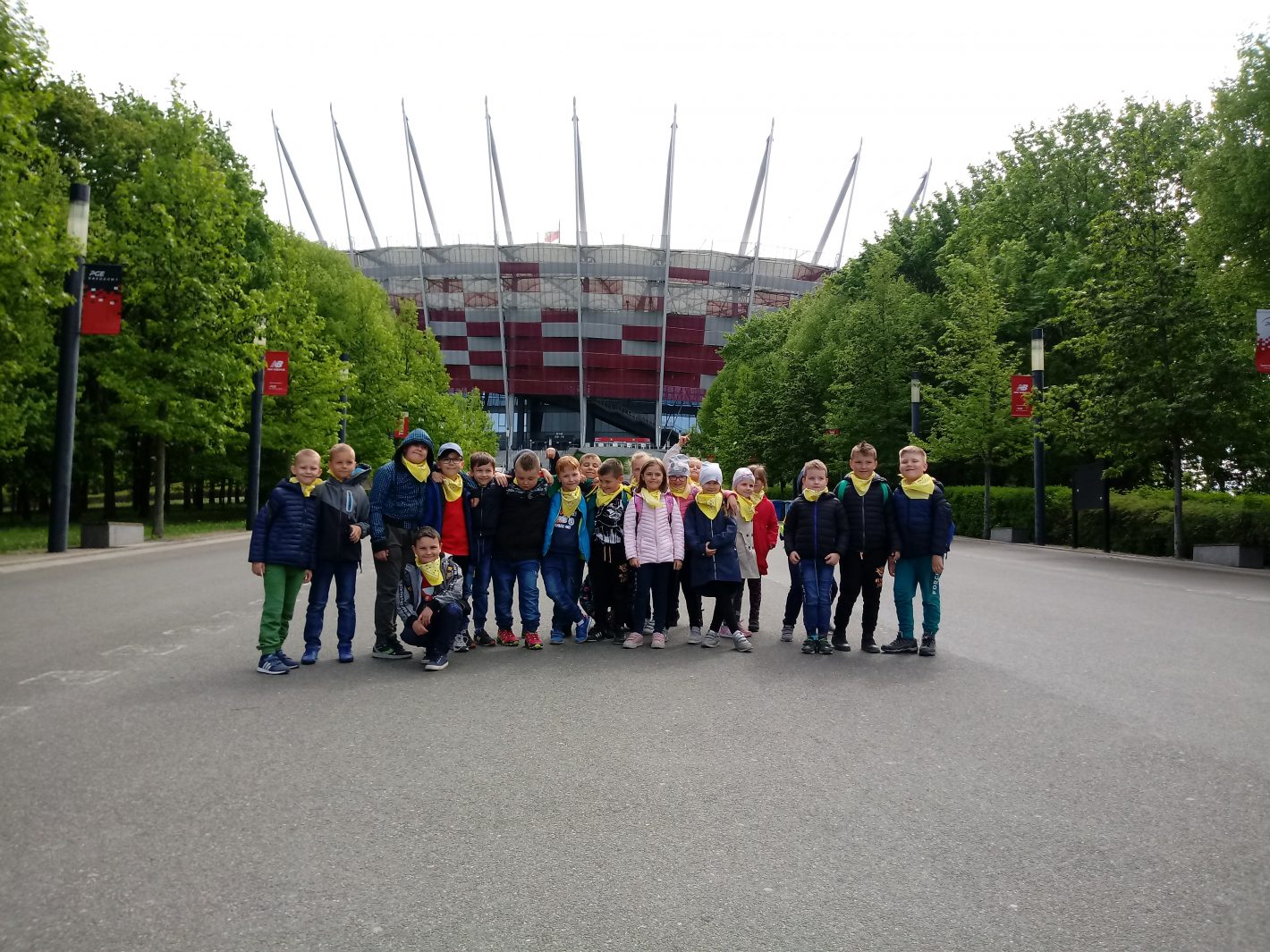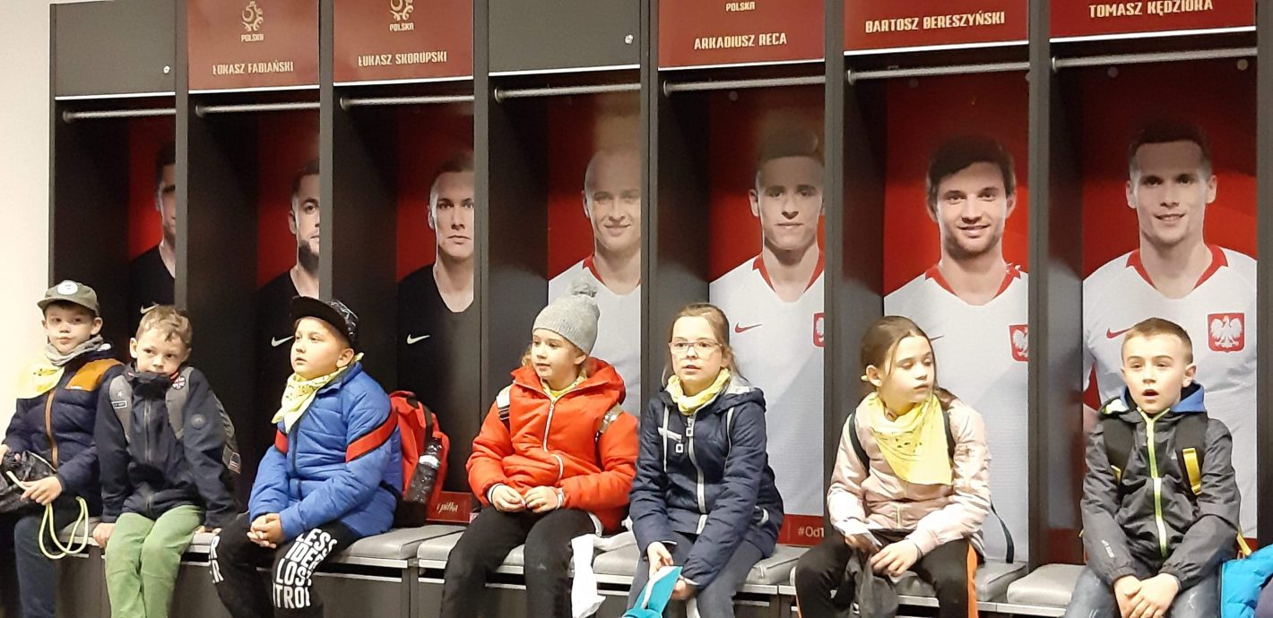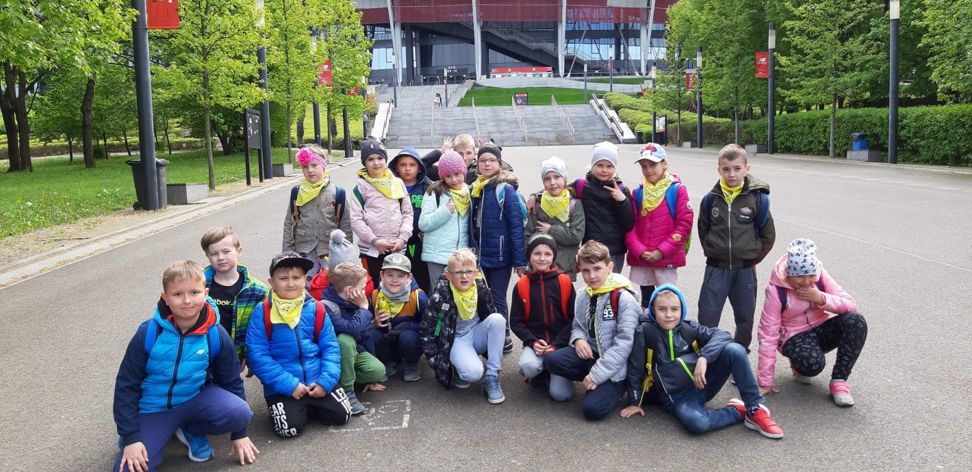 Zwiedzanie Warszawy rozpoczęliśmy od spaceru po Łazienkach Królewskich. Nie mogło również zabraknąć spaceru po Starym Mieście, przewodnik pokazywał i opowiadał nam o najważniejszych miejscach i pomnikach. Widzieliśmy m.in. Kolumnę Zygmunta i Pomnik Małego Powstańca. Udaliśmy się także na Plac Piłsudskiego, by zobaczyć Grób Nieznanego Żołnierza. Akurat odbywała się zmiana warty. Następnie zwiedzaliśmy stolicę z okien autokaru. Ostatnim punktem w programie wycieczki była wizyta na Stadionie Narodowym. Podczas trasy zobaczyliśmy m.in. pomieszczenia strefy zawodniczej, oraz centrum medialne PGE Narodowego. Największe wrażenie na dzieciach zrobiły trybuny i płyta boiska.